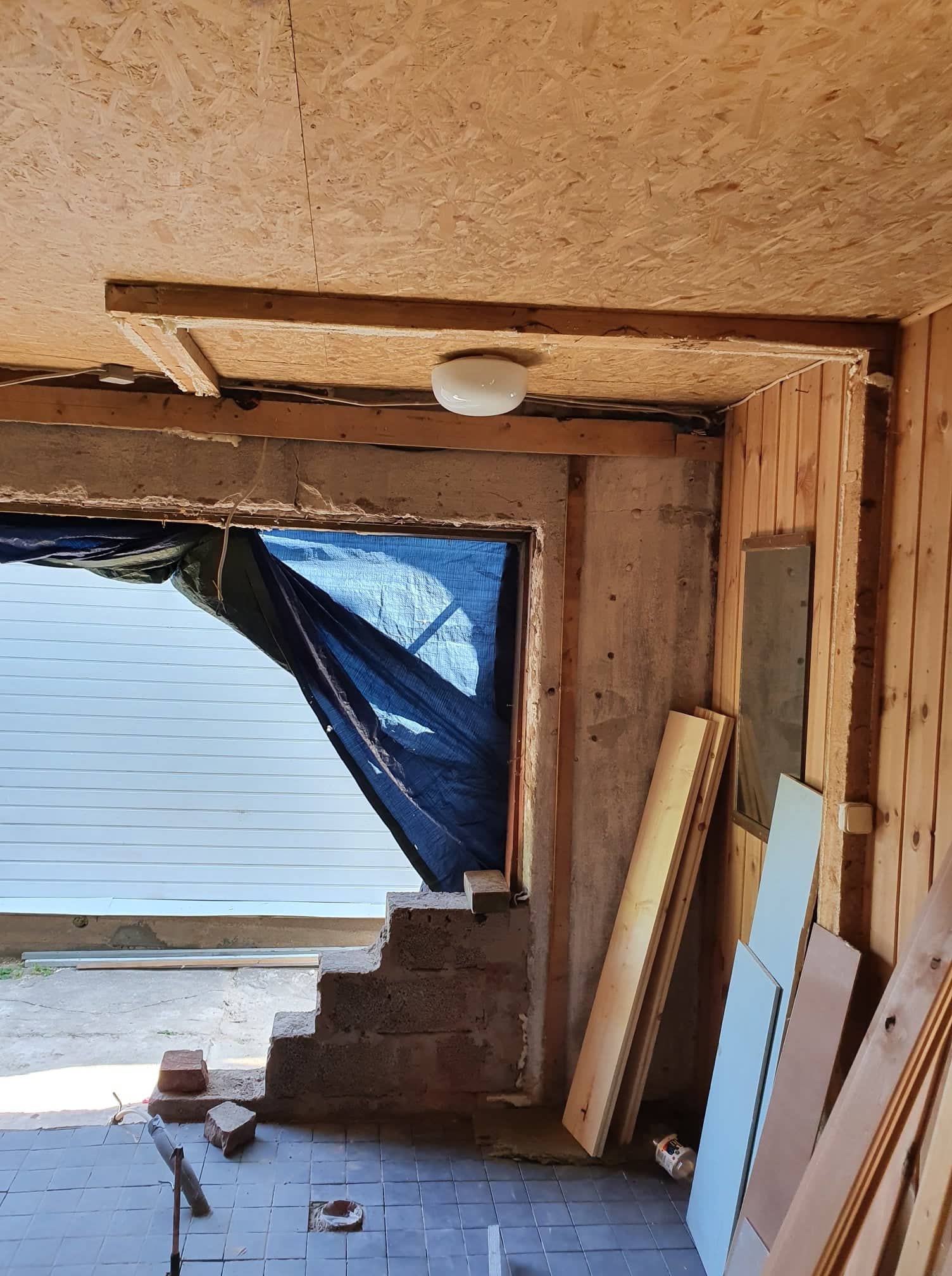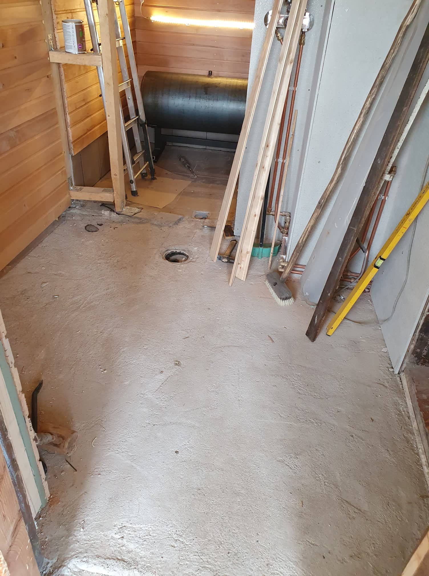 Leiliruumi lava ehitus, pesuruumi põrandakütte paigaldus ja plaatimine, pesuruumi osaline plaatimine, WC ruumi seina ehitus, puhkeruumi välisseina ehitus, torutööde lõpule viimine.