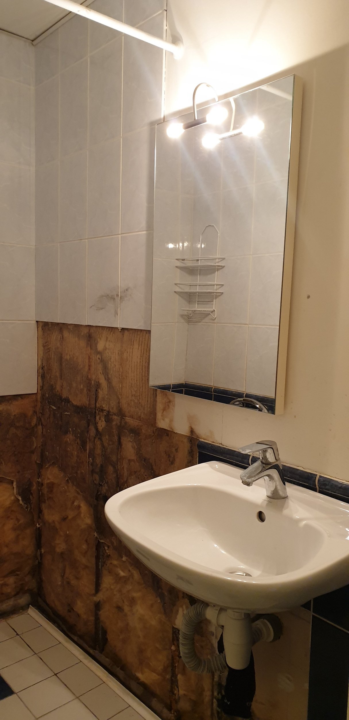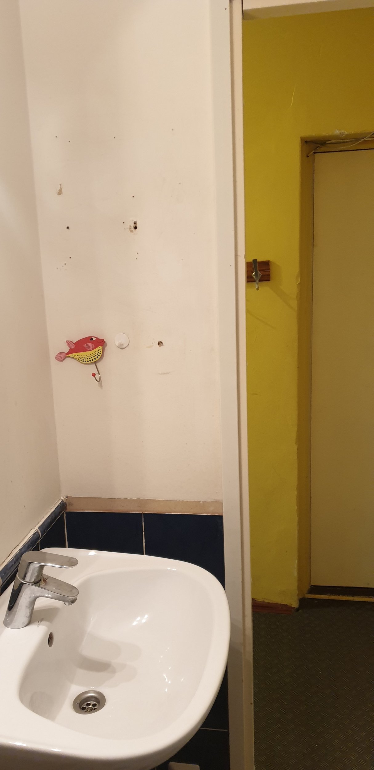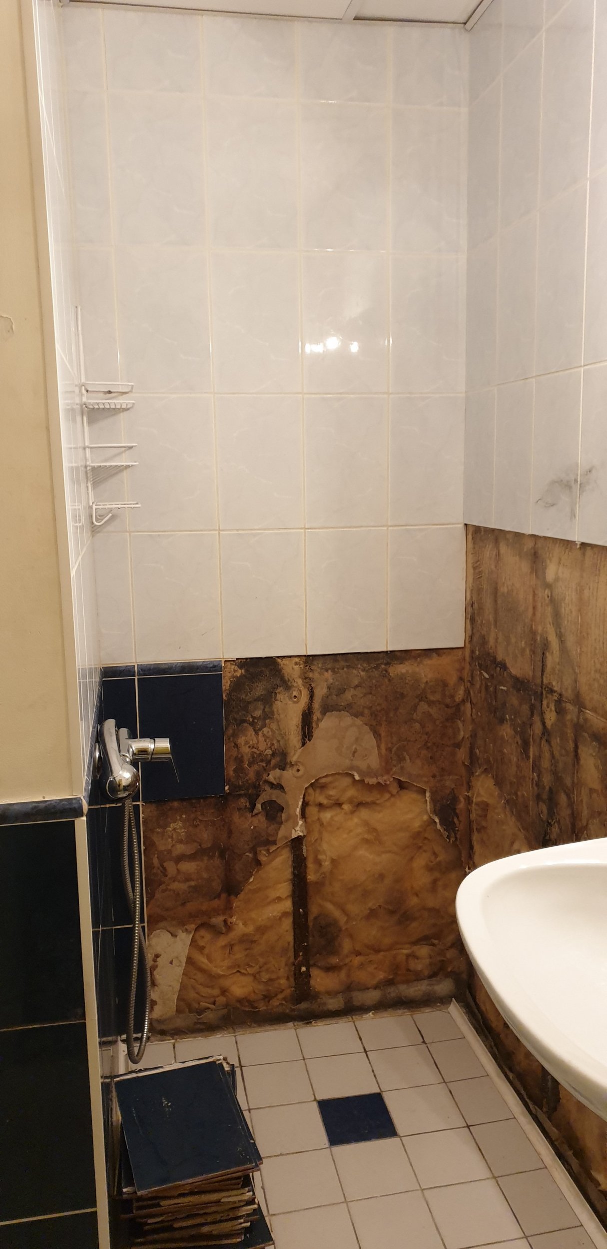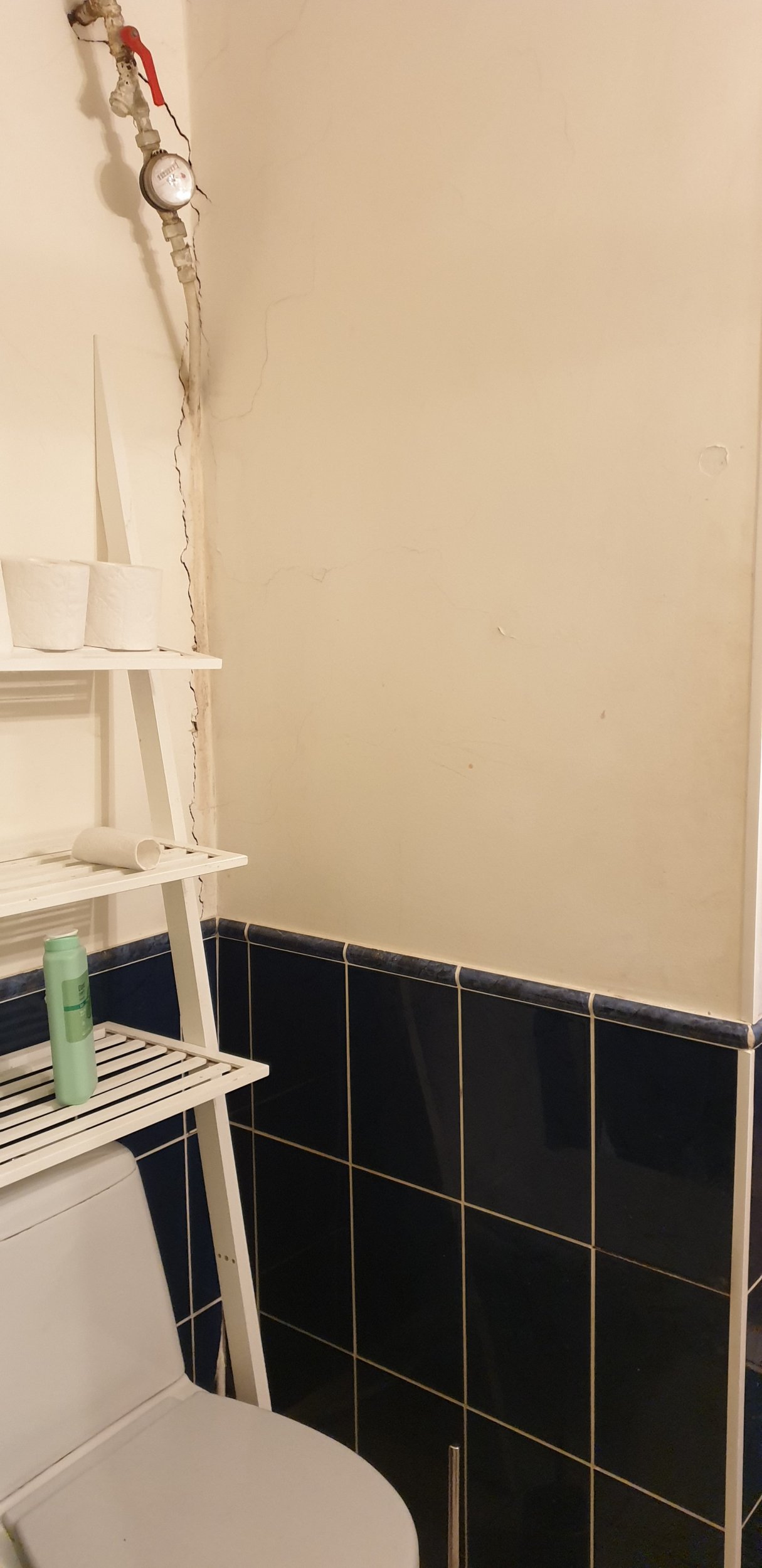 põrandaplaadid on osad lahtised ning seetõttu tuleb kogu vana põrandaplaat eemaldada ja paigaldada uus plaat. Kuna seina/põranda nurk on niiskunud, tuleb seintelt (kaks seina) plaadid eemaldada ja paigaldada osaliselt uus kipsplaat (umbes 1.1m kõrguselt, mis on niiskunud) . Enne kipsi paigaldamist tuleb seinakarkassi hor.pulki mõned juurde paigaldada. Seejärel niiskutõkega üle värvida ja paigaldada uus seinaplaat. Alumine seina/põranda nurk tuleb hüdroisolatsiooni kanga ja mastiksiga viimistleda enne plaatimist. Mõned porte liistud tuleb uuesti paigaldada wc juures ning samuti wc juures olev seinanurgas olev pragu natuke lahti lüüa ja paigaldada Pahtel/hermeetik ning värvida sein.