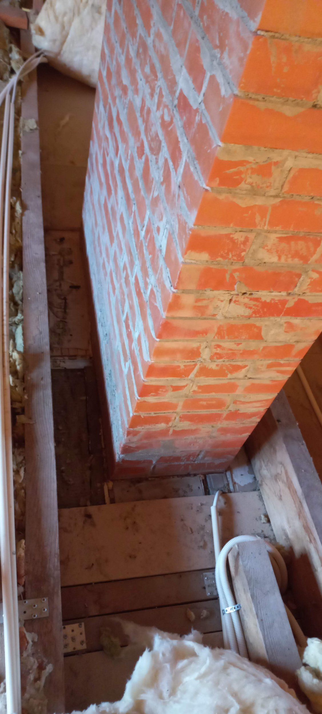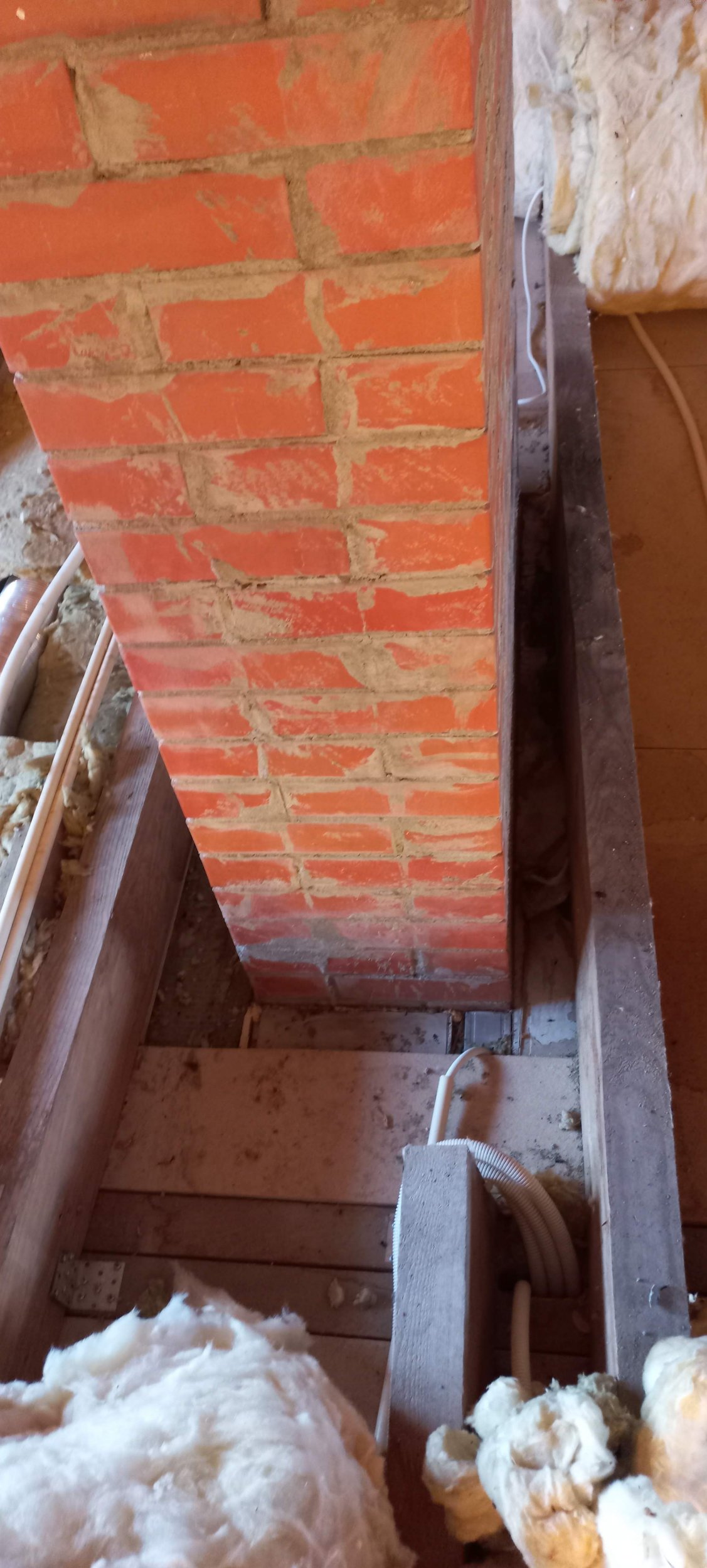 Eramu vahelaetalad ei ole korstnast piisavalt kaugel ja on vaja vekseldada nii, et talade kaugus korstnast oleks 20 cm. Alumise korruse lae puitlaastplaadid on ilmselt 2 tala külge kruvitud, mis tähendab, et need tuleks kuidagi lahti saada nii, et alumise korruse lage ära ei lõhuks. Kui praod tekivad, on ok.