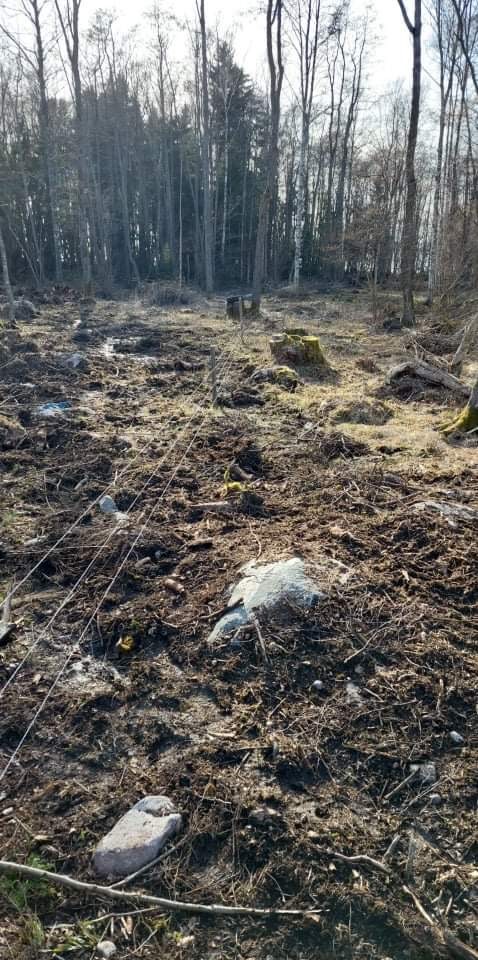 Maapind on konarlik, sisaldab kive ja mõningaid kände. Lihtsamalt kättesaadavad kivid kännud tuleb eemaldada, ning transportida objektil näidatud kohta. Suures pildis peaks mulla peale vedamisest piisama.