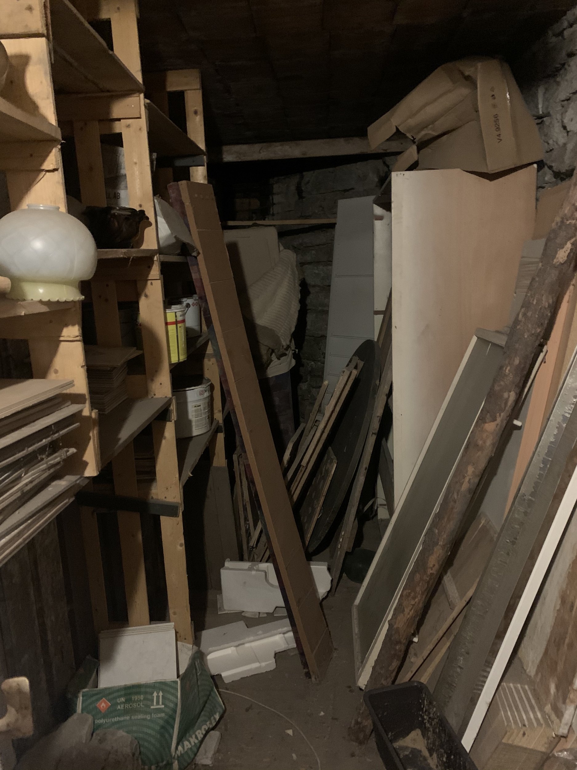 Vaja oleks tühjaks tassida ja ära vedada kola ca 6m2 panipaigast. Suurematest asjadest on seal 200l boiler, suurem riiul ja diivan, ca 200 telliskivi, vanu värvipurke ja halogeenlampe. muu on väiksem puidukraam.
