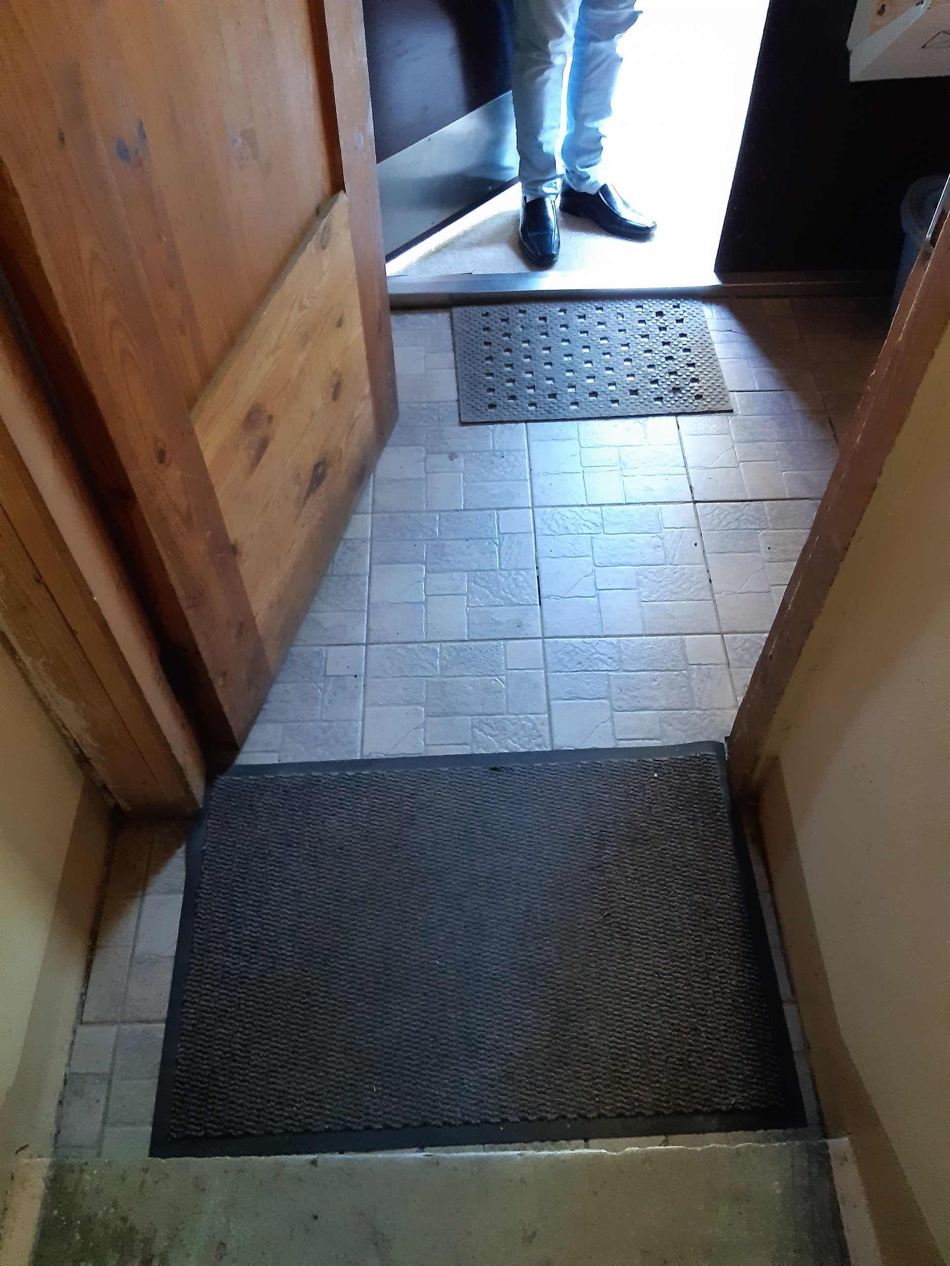 kortermaja väikese esiku põrandaplaatide vahetus ning 3-da korruse koridori PVC maha panek .