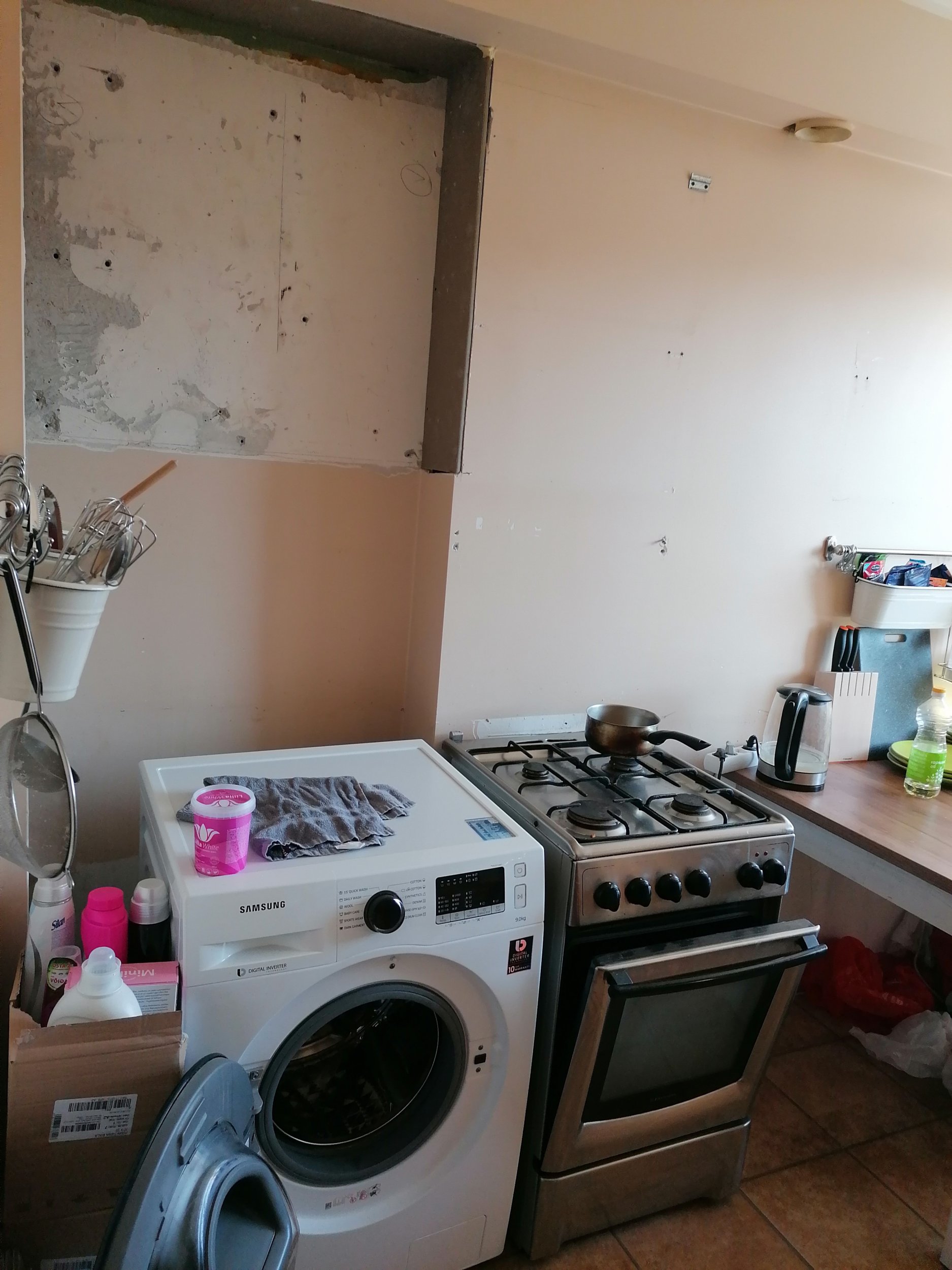 Vana lõhkumine (põrand),pliidi (teised asjad saavad liigutatud) ,ehitusjäägi ära viimine, uus laminaatparkett põrand,pahteldustööd (kruviaugud,täkked ~10 ),kogu köögi värvimine,plaatimine umbes 3 ruutmeetrit. 2-3 pistiku paigaldamine seina koos el. töödega. Lambi vahetus.