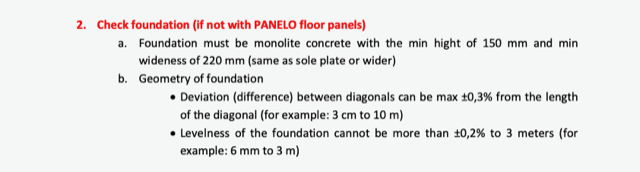 Tootja poolt on tingimus, et vähemalt 70% seinast toetaks betoonil.