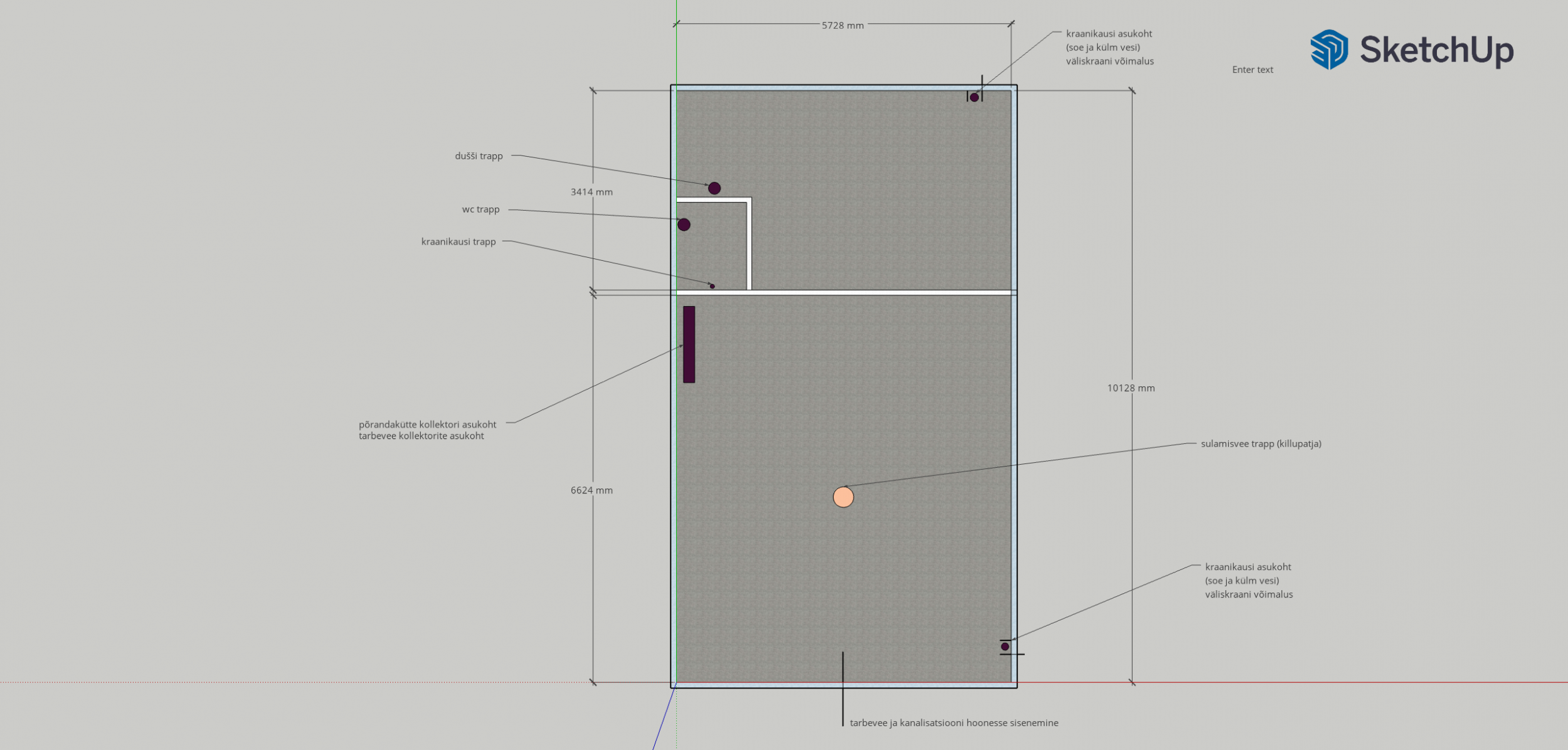 Suuremas ruumis (garaaz) peaks olema ka sade/sulamisvee trapp mis valguks hoonest välja killupatja.