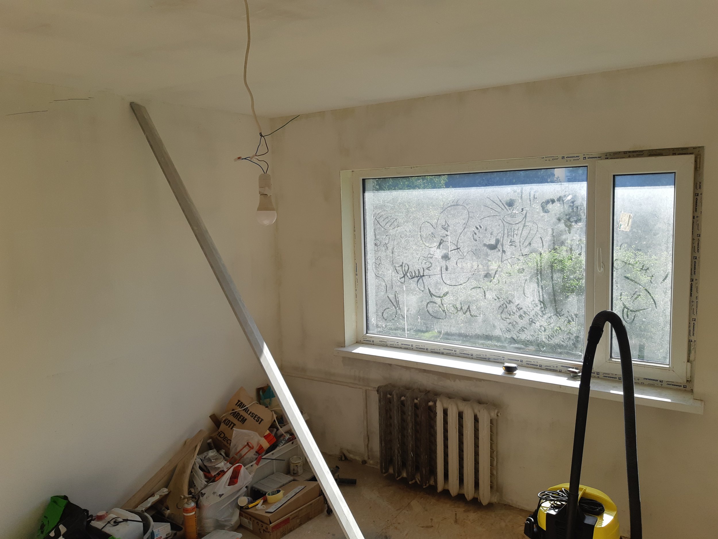 Vaja lõpetada ühes toas maalritööd. Seinad/lagi on juba sirgeks krohvitud ja pahteldatud. Vaja veel panna mõnes kohas viimane kiht pahtlit ja lihvida. Seinad ära kruntida ja lagi värvida. Aknaga sein ka ära värvida. Paigaldada tapeet.