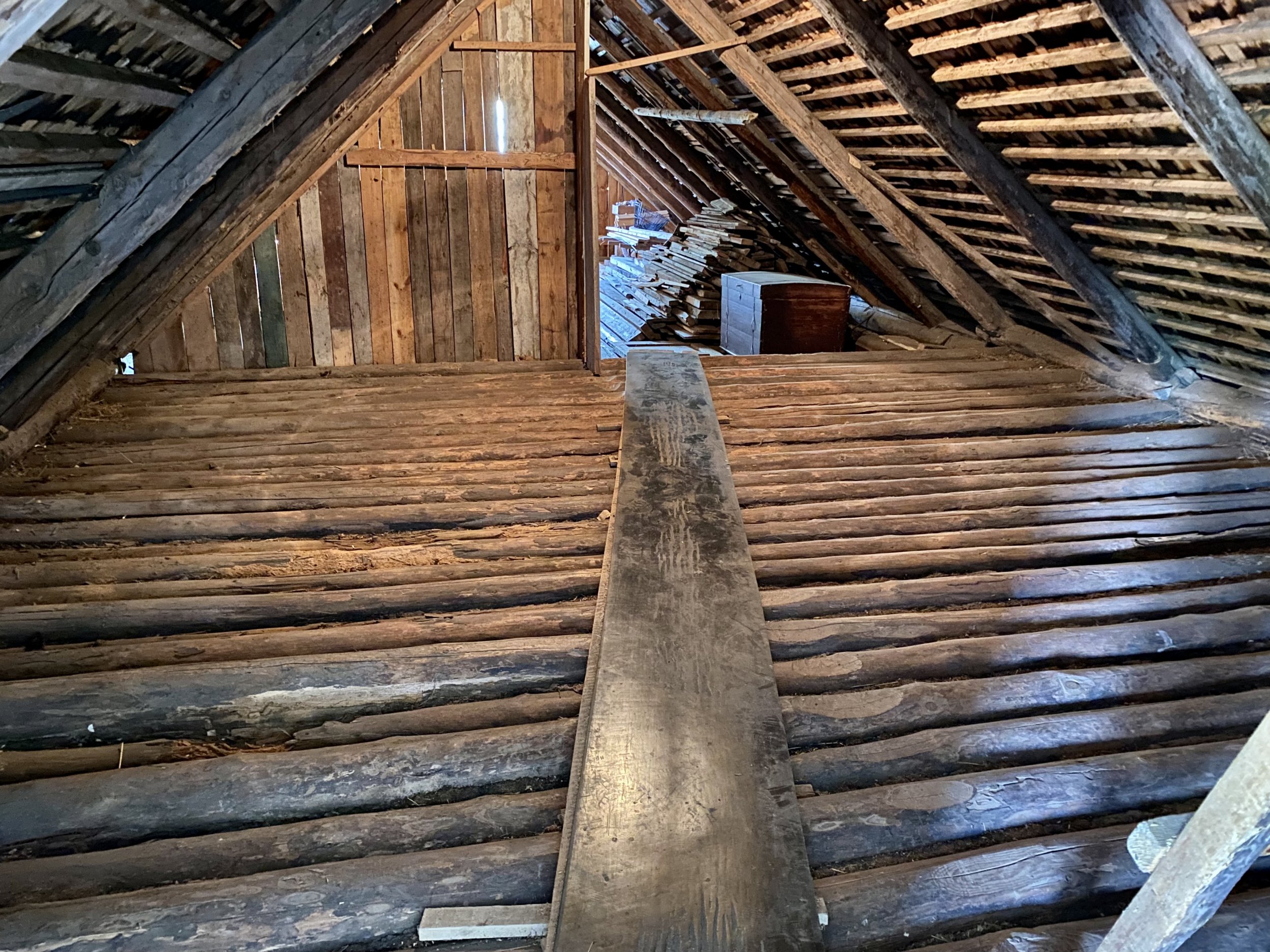 38 m2 pööningu palkidest põranda katmine OSB puitlaastplaadiga. Mõned palgid tuleb välja vahetada. Põranda soojustamine enne OSB paigaldust.