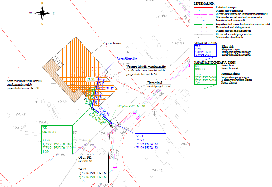 - Vee- ja kanalisatsiooni liitumise trasside ehitamine kinnistu piiril asuva liitumispunktini