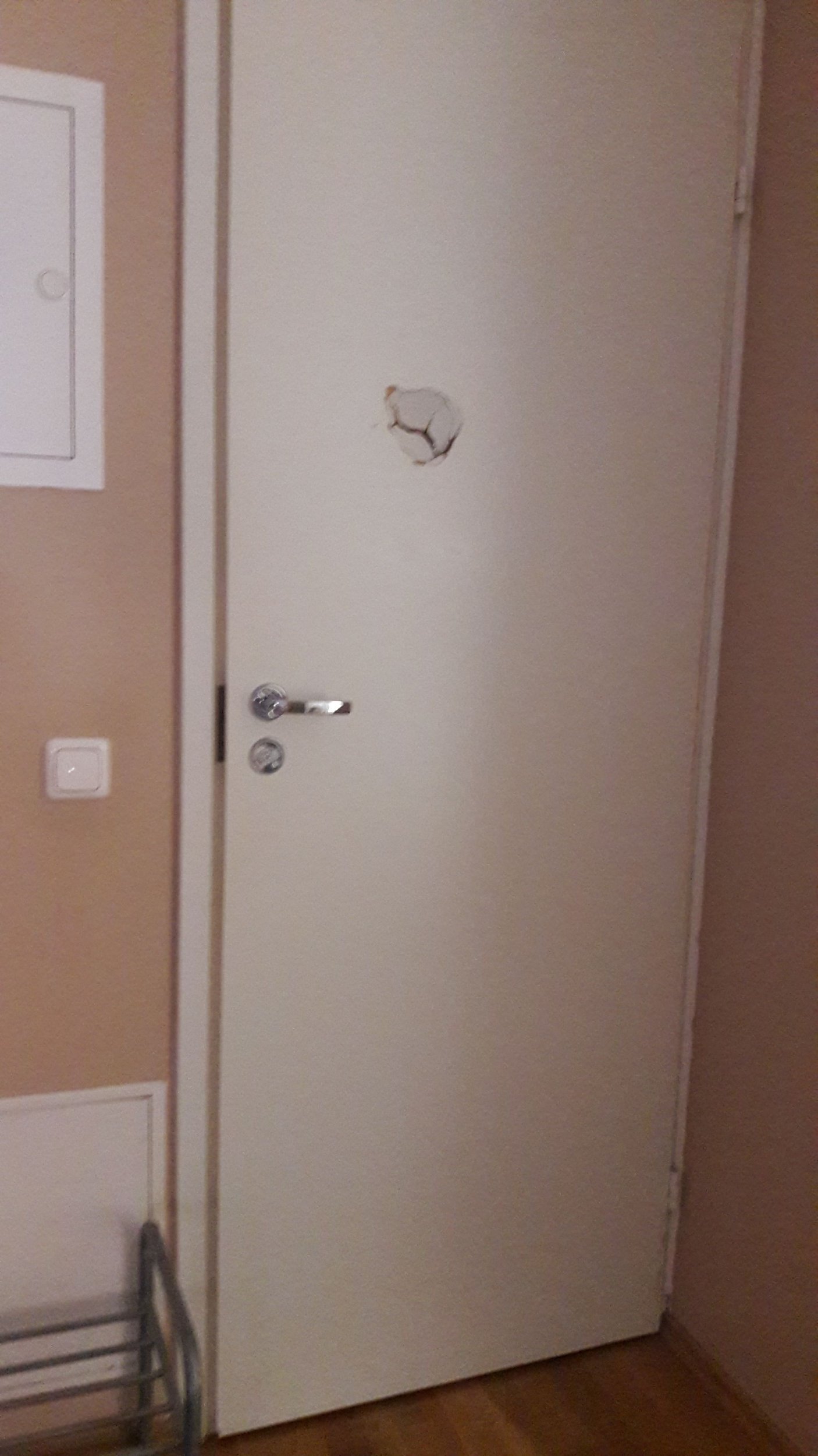 3) wc ukses oleva augu parandust, materjaliga katmist (ukse parandamise materjal töö teostaja poolt).