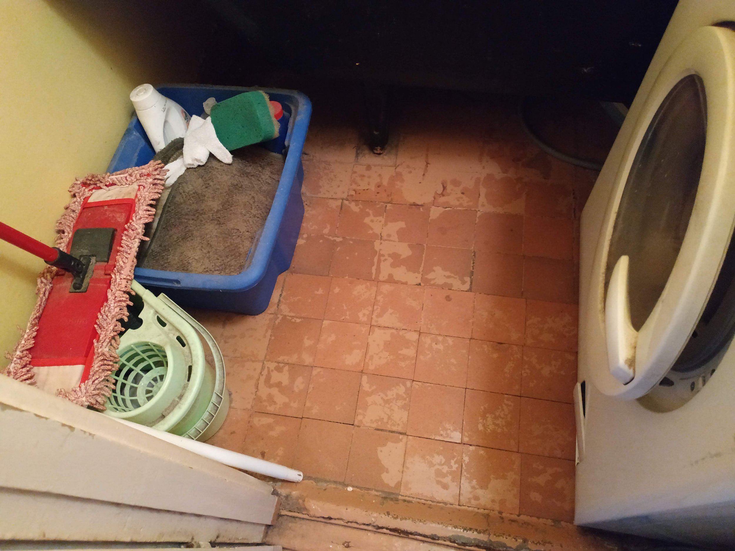 Pesumasina uus asukoht dušinurga kõrval samas seinas.
