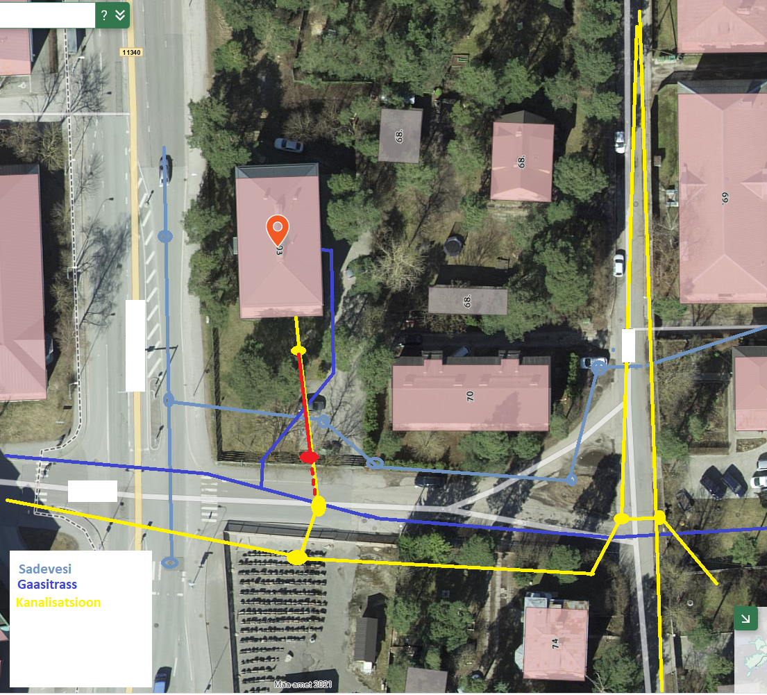Vana kanalisatsioonitoru ületab gaasitrass, sadeveetoru ja ilmselt sidekaablid.