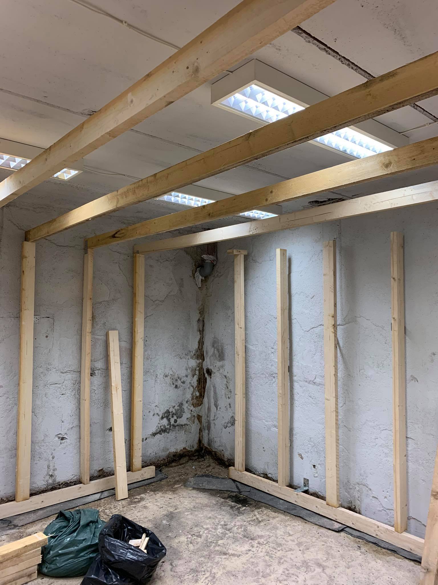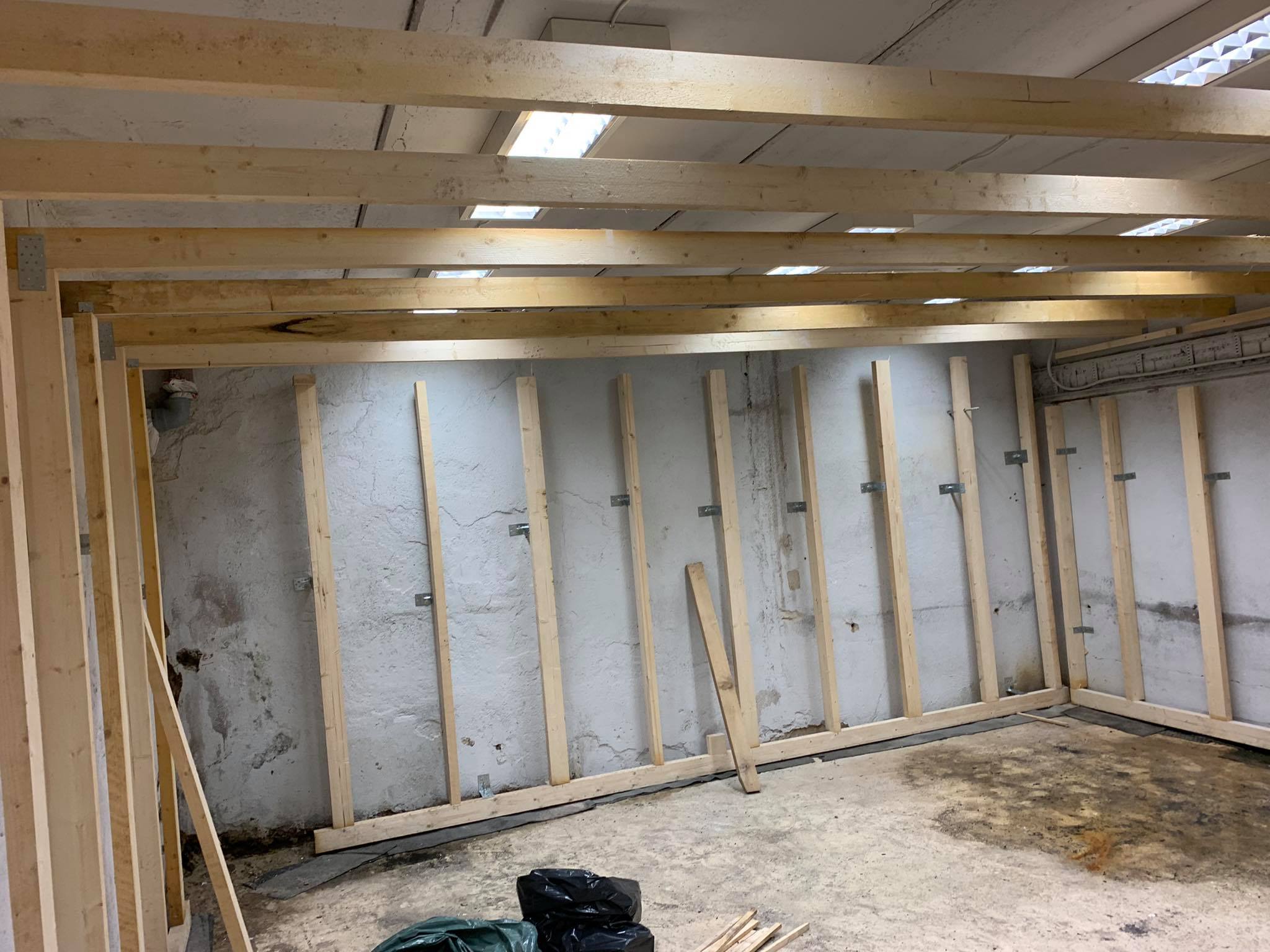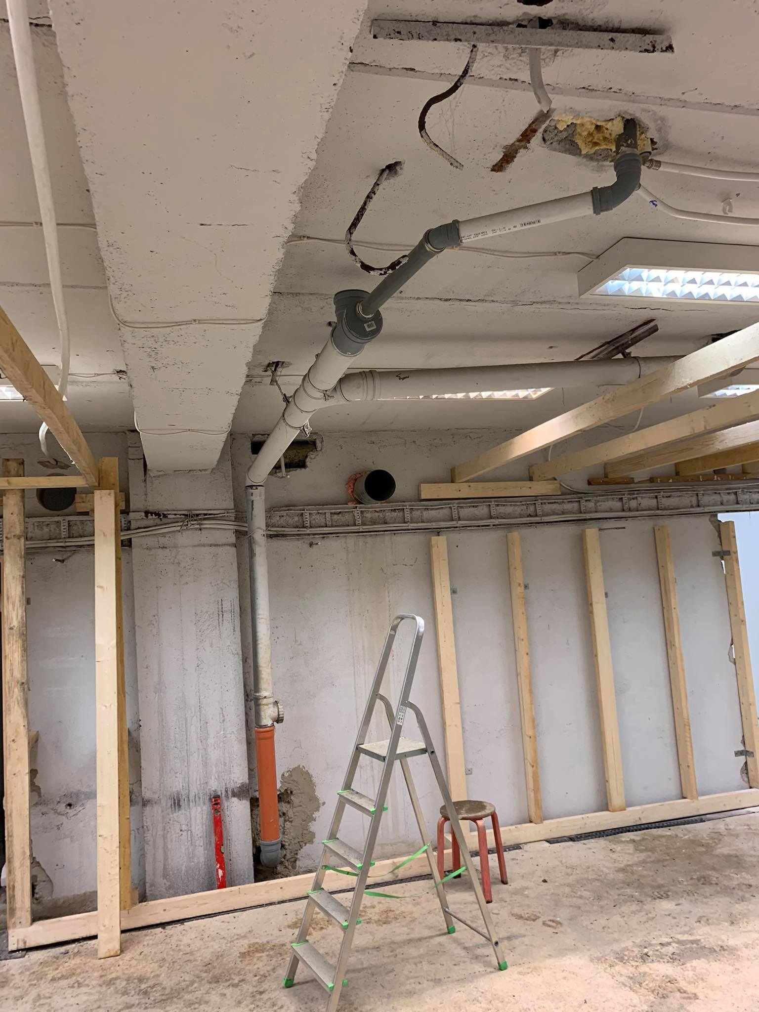 Keldriruumides ventilatsioonitorude paigaldus vastavalt joonisele. 2 augu puurimine välisseina ja 2 auku kipsseina. Torude vedamiseks seintesse ülejäänud augud on olemas. Klambritega lae alla torude paigaldus ja torudevaheliste liitekohtade teibiga ühendamine. Sisse- ja väljapuhkeventilaatorite paigaldus. Summuteid ei paigaldata.