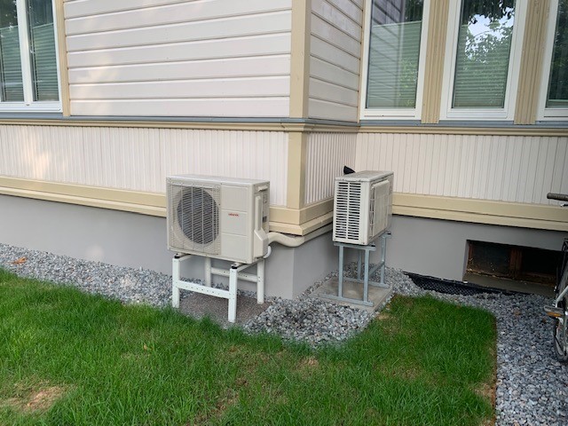 Ehitada viiele õhksoojuspumba välisosale kerge puidust lippidest kate ja värvida. Paigaldada kate õhksoojuspumba raamile (mitte maja seina külge). Katus võib samuti olla puidust lippidest. Kaetud peaks siis olema küljed, esikülg ja pealt, tagant võib olla lahti, kuna see on maja seina poole.