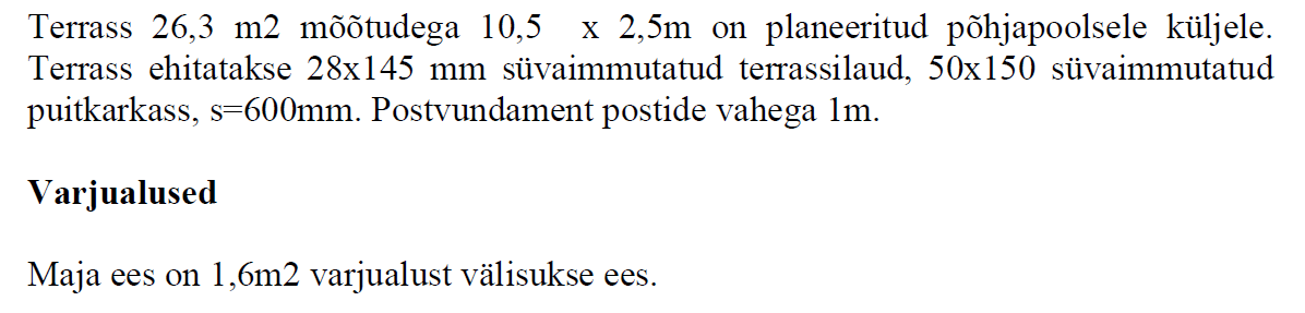 | Ehitusmaterjalid: | Töö tellija poolt |