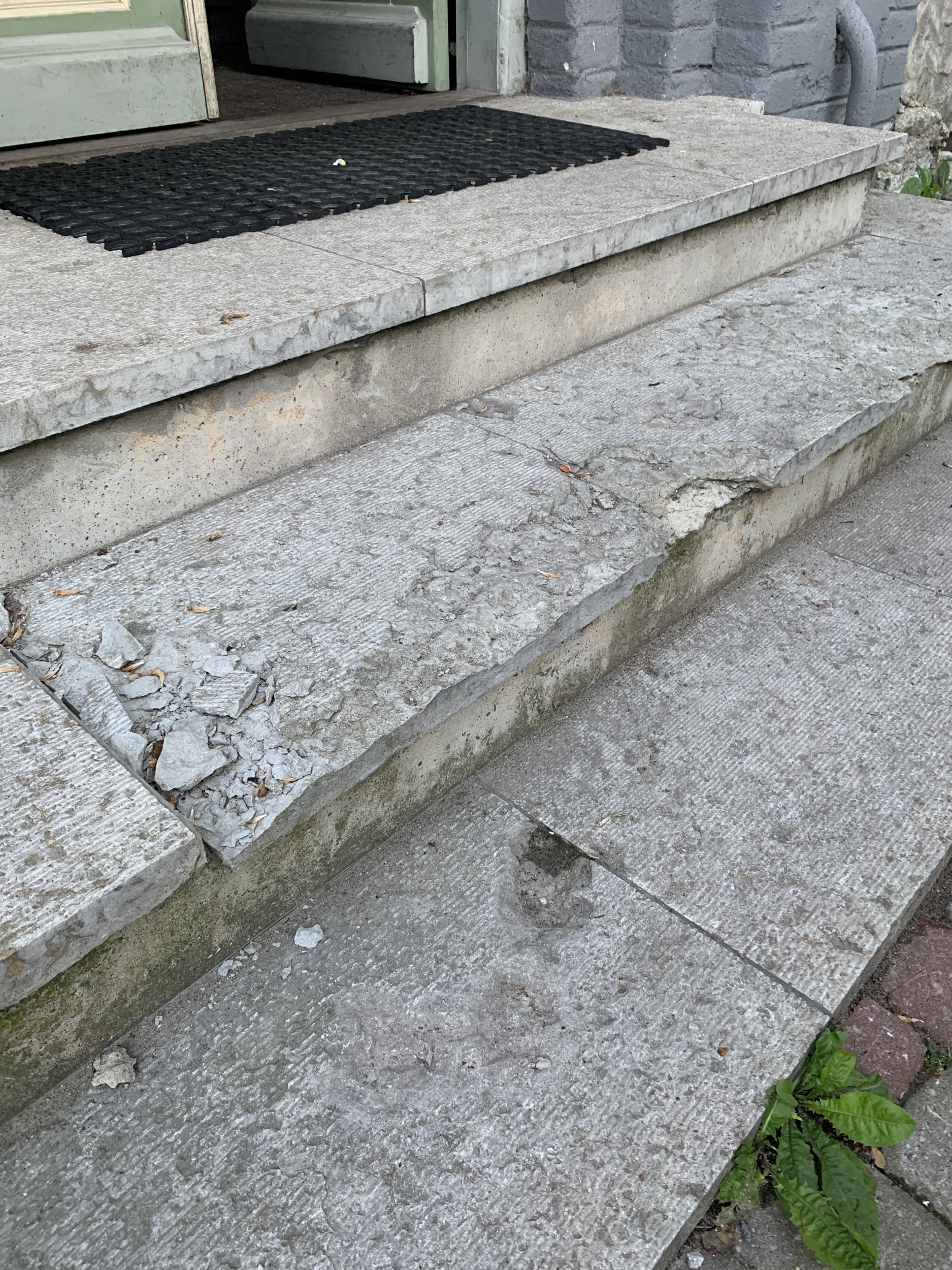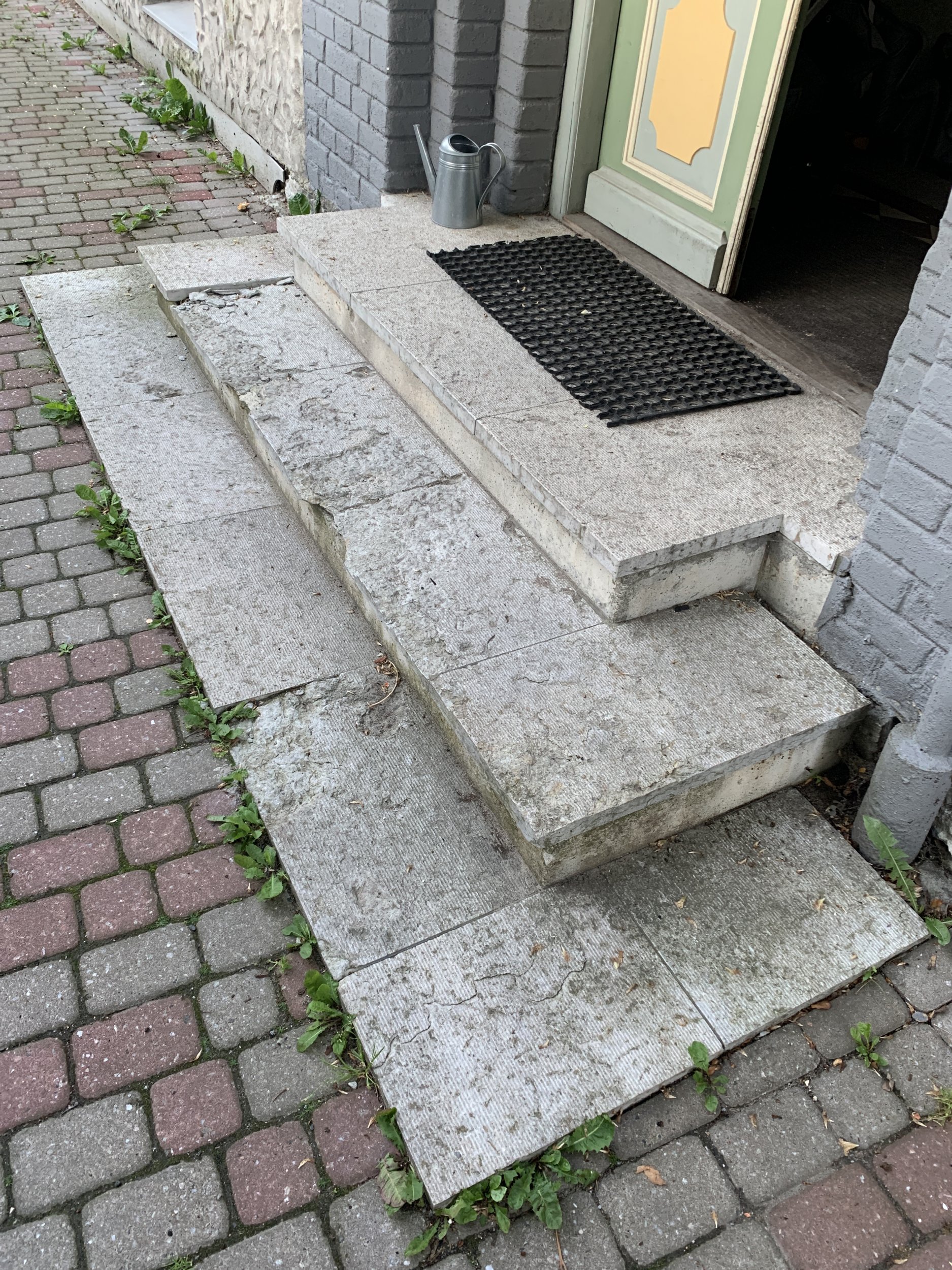 Kortermaja soklikorruse krohvi parandustööd, akanaplekkide vahetus (ca. 16tk) ja kivitrepi plaatide vahetus.