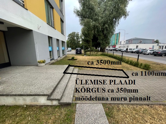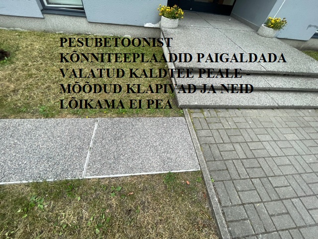 Tallinnas on tarvis kortermaja trepile valada kaldtee. Kaldtee peale tuleb paigaldada pesubetoonist kõnniteeplaadid (need saab Kiili betoonist). Kaldtee pikkus on 3500mm ning laius on 1100mm. Kokku läheb 5 plaati (neid eraldi lõikama ei pea, plaadi mõõdud on 1100mm*700mm). Vaata lisatud pilte, et näha rajatava kaldtee soovitud paiknemist trepi suhtes.