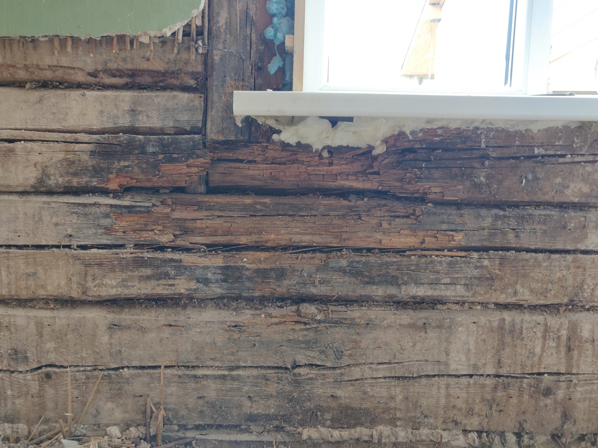 Vajalik on akna alt seestpoolt ära vahetada kahjustunud palgid.