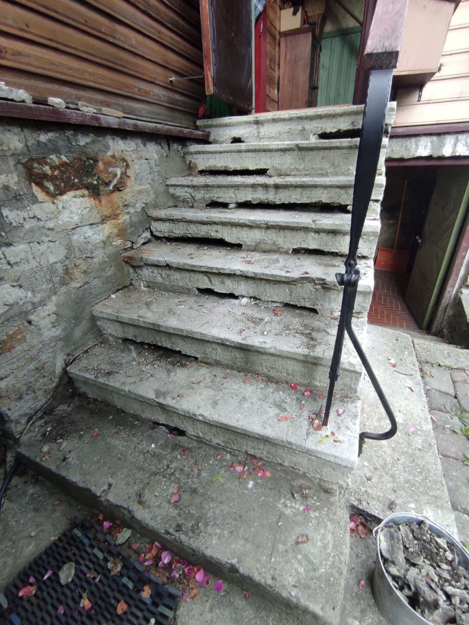 Soov parandada välistreppi. Pildil on näha, et astede vahel on augud. Astede pind on kulunud.