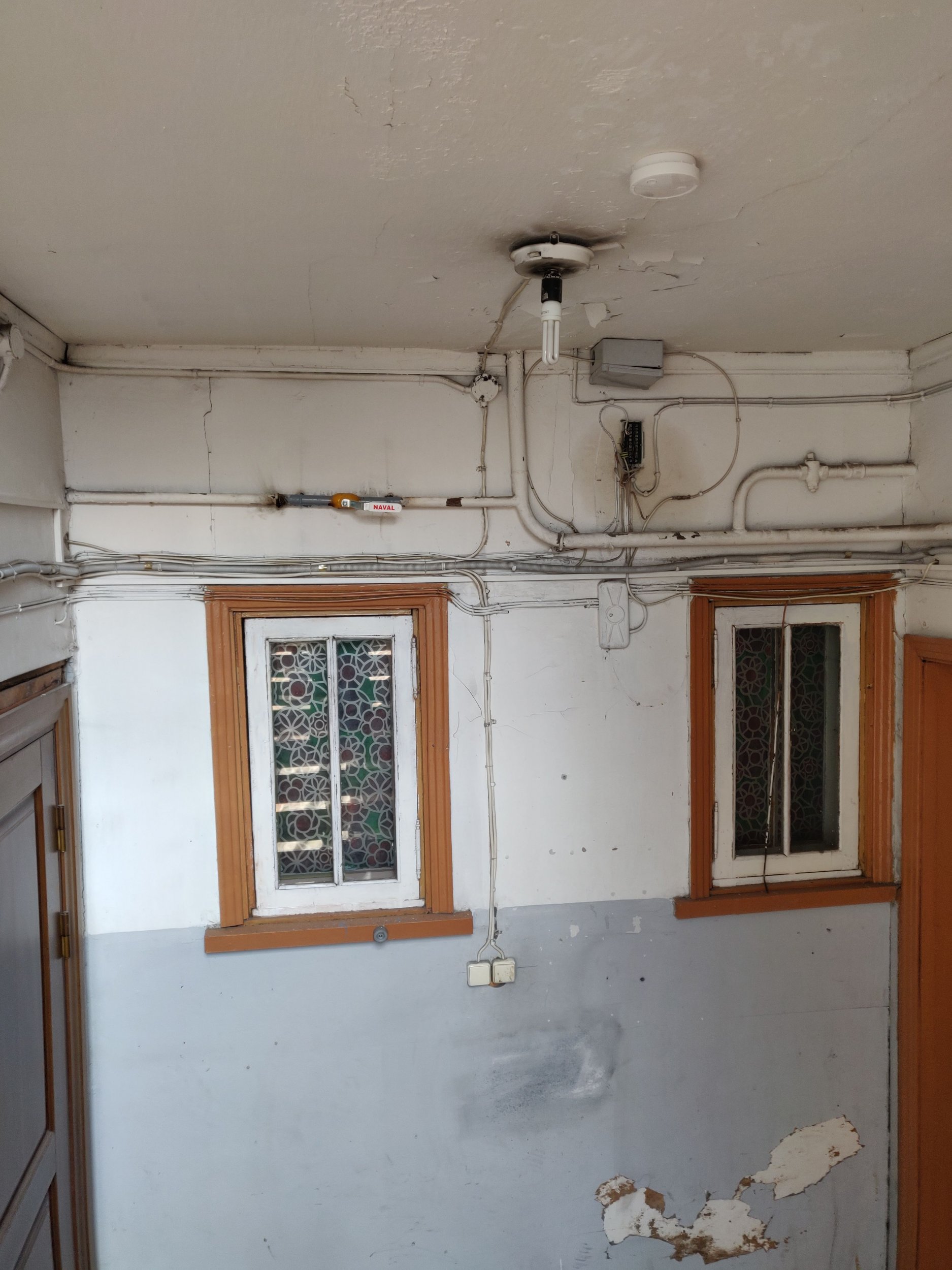 Viie koridorivalgusti vahetus vanas puitmajas.