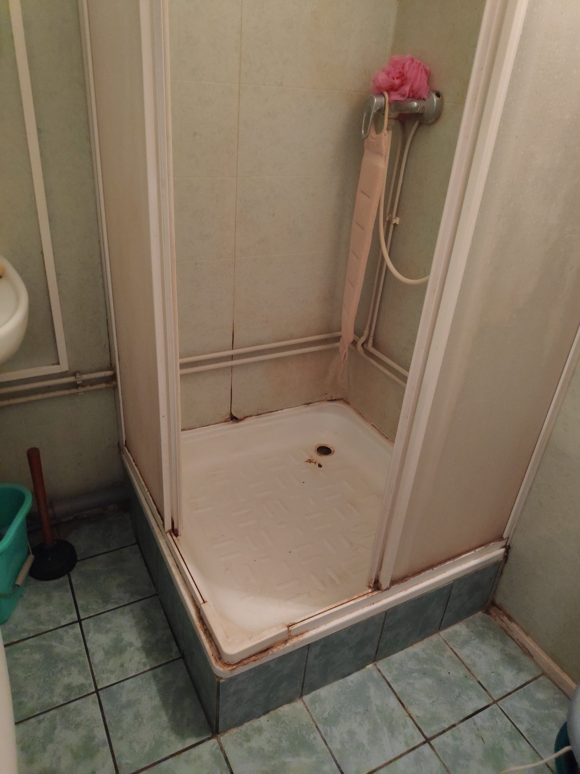 Amortiseerunud madalapõhjalise dušikabiini asendamine dušinurgaga ilma aluspõhjata ja äravoolu tekitamine vannitoa keskele.