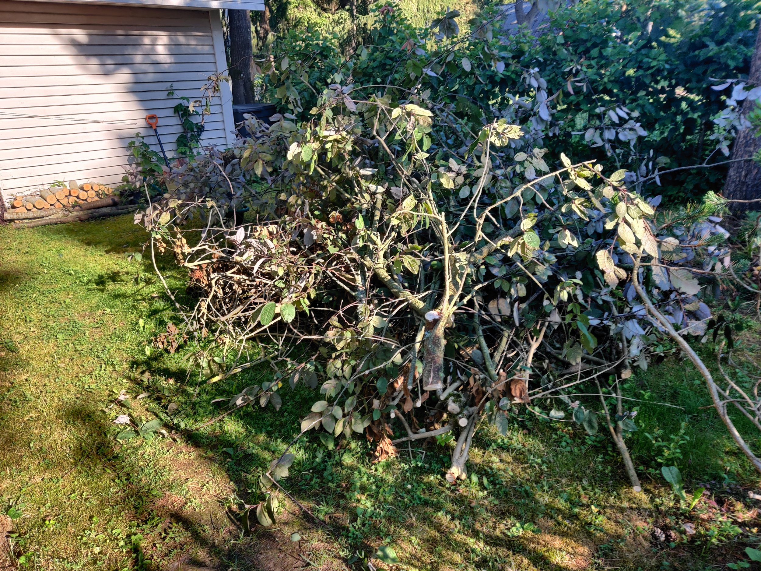 Okste äravedu Pirital. Kaks hunnikut, üks umbes 3mx3m ja teine 2mx2m suuruses. Enamus oksi alles lõigatud, seega puhevil hunnikud. Hunnikus on sireli, ploomi jm oksad, tavaline aia kraam. Saan vedada ka aia äärde, et saaks käpaga võtta.