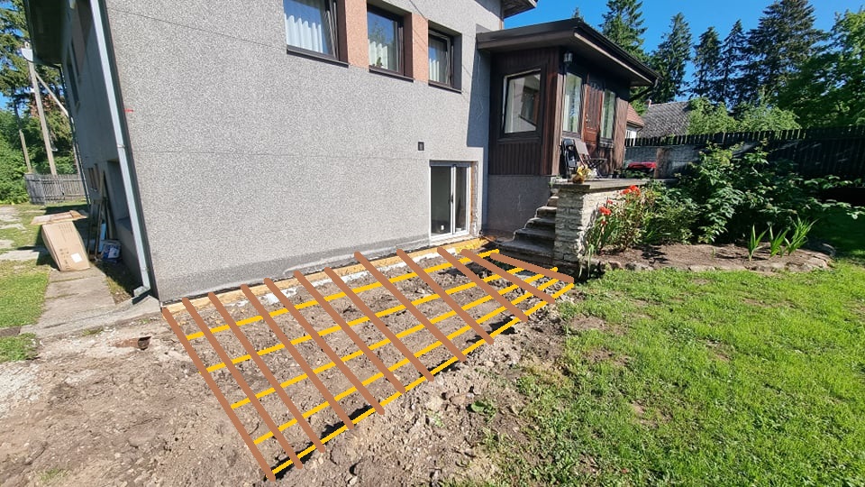 Teha väliterrass (u 21m2) koos vundamendiga, mis kannataks hiljem peale panna ka kümblustünni (mis tuleks vasakule poole nurka)