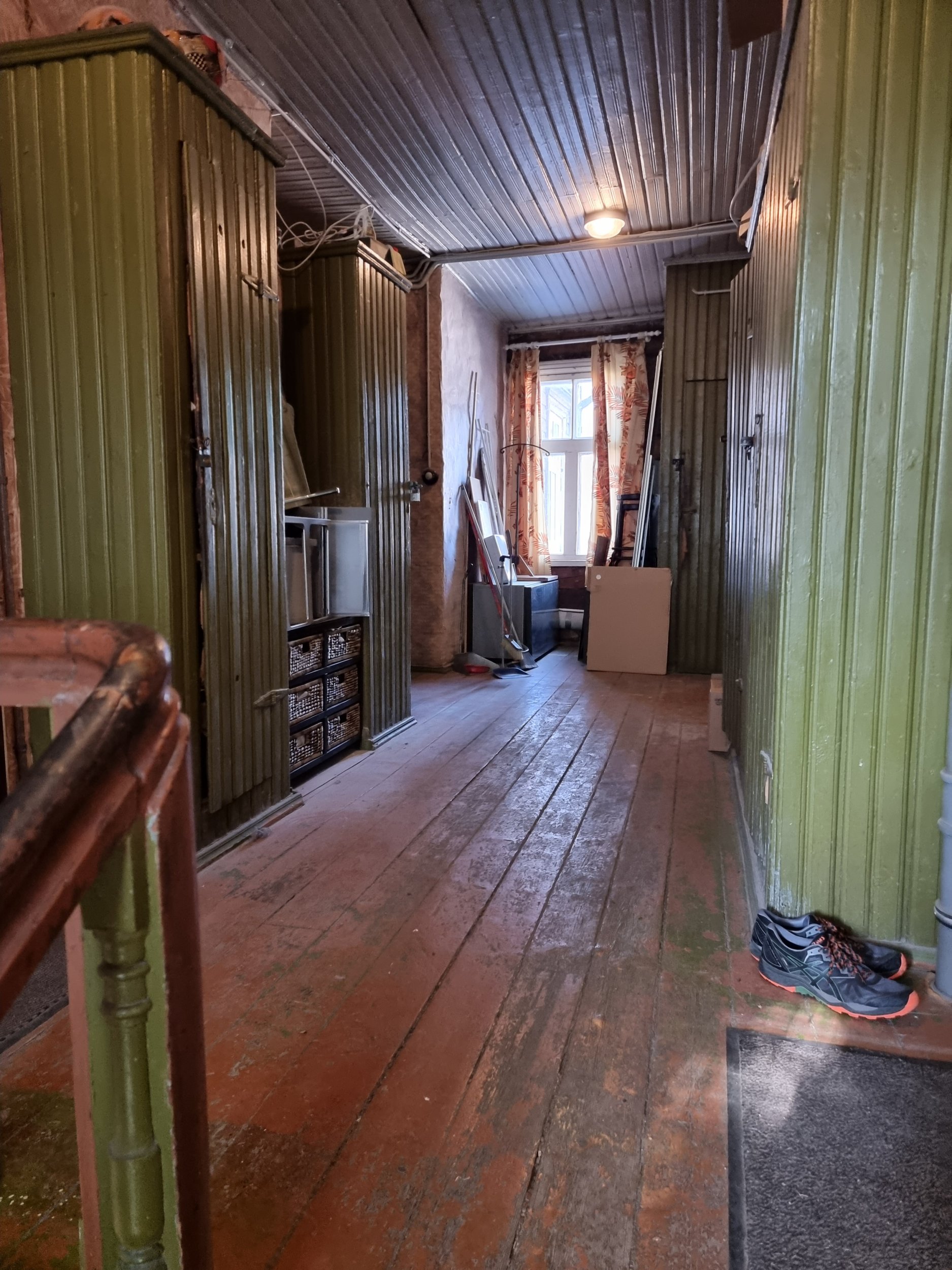 Esimese korruse koridor, kokku ca 16m2. TÖÖD: 1 korrusel vana põrandakatte eemaldamine uute laakide paigaldamine vajadusel tihedusega 0.4..0.5m (aluskiht peab olema tasane, ebatasasus ei tohi ületada 2 meetrisel lõigul +/- 2mm).