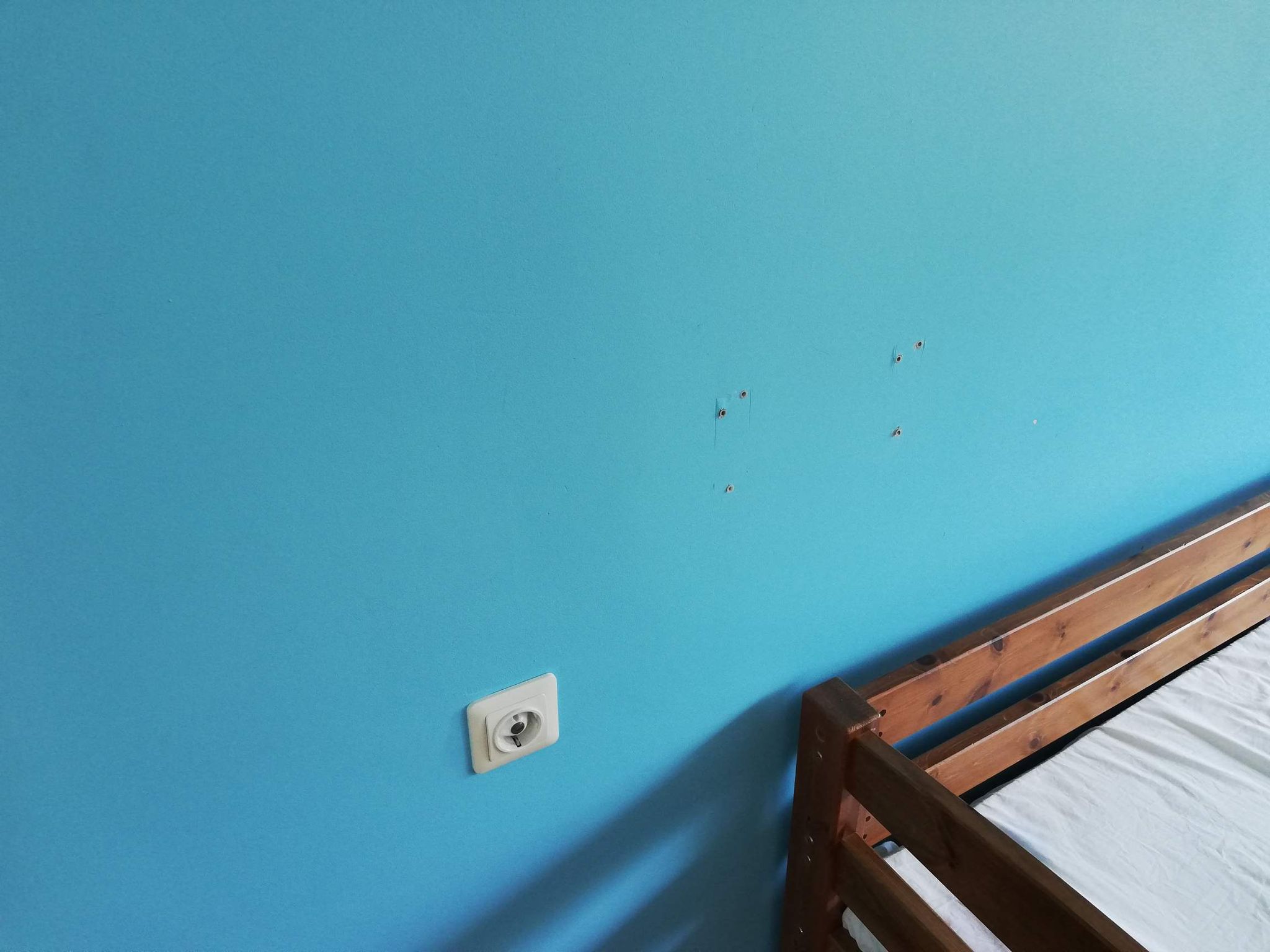 Tapeeditava seina vastassein tuleb heledamaks värvida. Sein on mõõtudega 3,8 x 2,5. Sein on värvitud. Seinas on tüüblitega kruviauke, mis tuleb likvideerida. Seinas on kaks pistikupesa ja üks lamp.