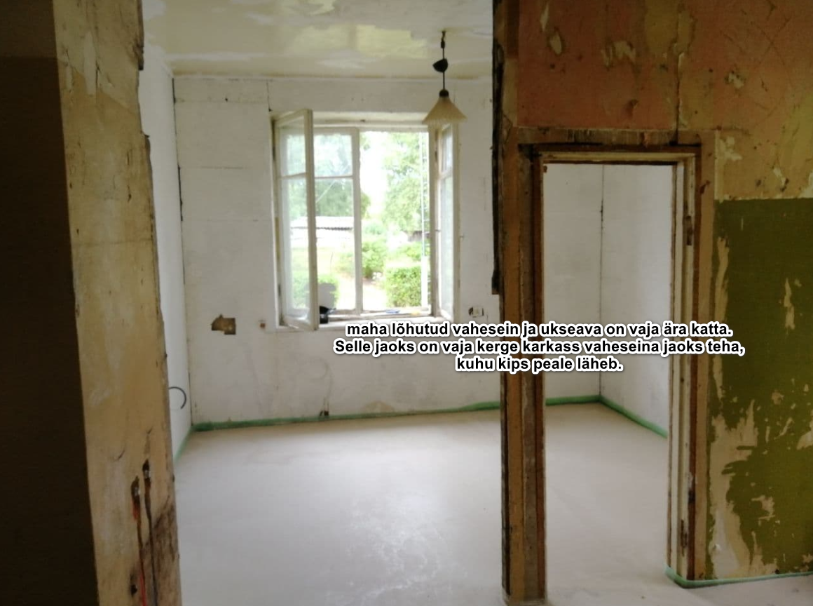 Karkassi kipsile ehitada pole vaja. Läheb otse seina. Kahel juhul on vaja karkass ehitada. Pildil on näidatud.