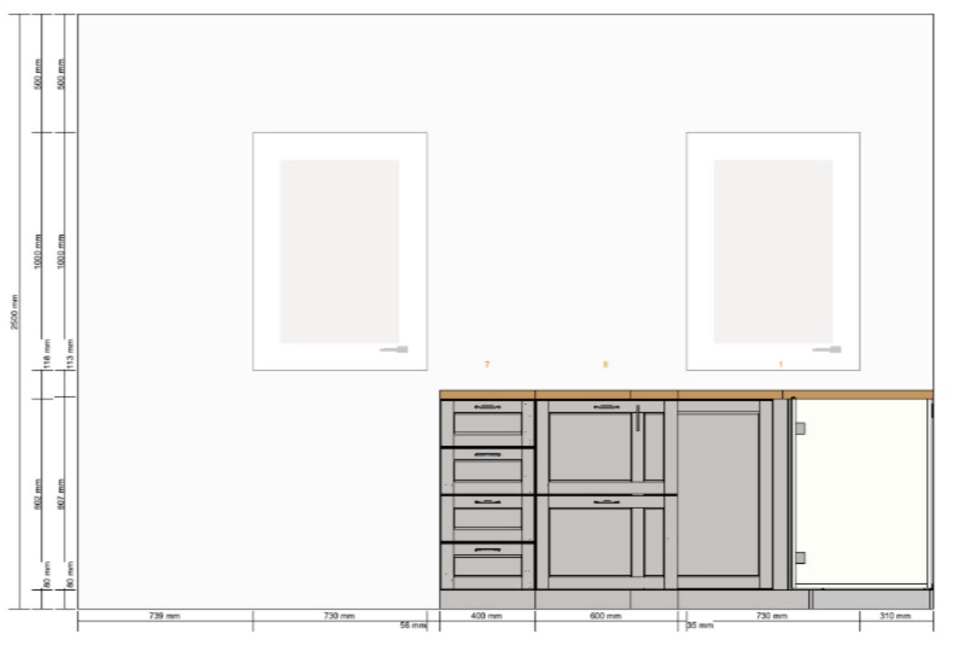 * Töötasapind tuleb kõigi eelduste kohaselt juba mõõtu lõigatuna, kuna tegu on eritellimusega. Üks nö väljaulatuv osa (ca 750 mm lai) läheb katuseakna orva sisse ja on tavapärase 600 mm asemel 800 mm sügav. Sisse tuleb lõigata valamu ja pliidi avad.