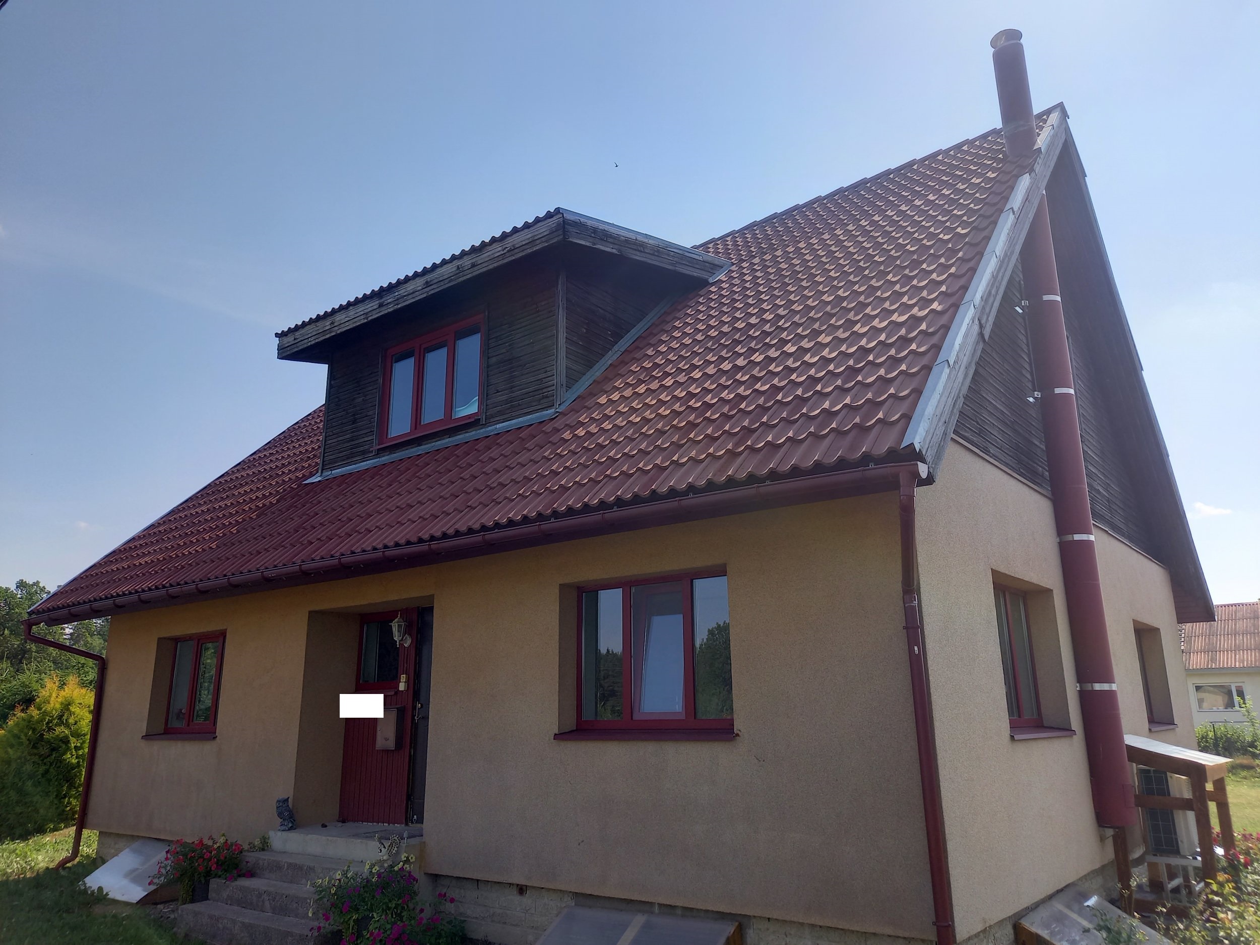 Kamina korstna tuulekastist läbi mineva osa korrastamine - tuulekasti ümberehitamine vastavalt tuleohutusnõuetele (korstna ümber peab jääma vahe ning peab olema ääristatud tulekindla materjaliga nt. sama cedral classic fassaadilauaga, mis laudiseks läheb). Piltidelt näha punane metall korsten maja küljel.