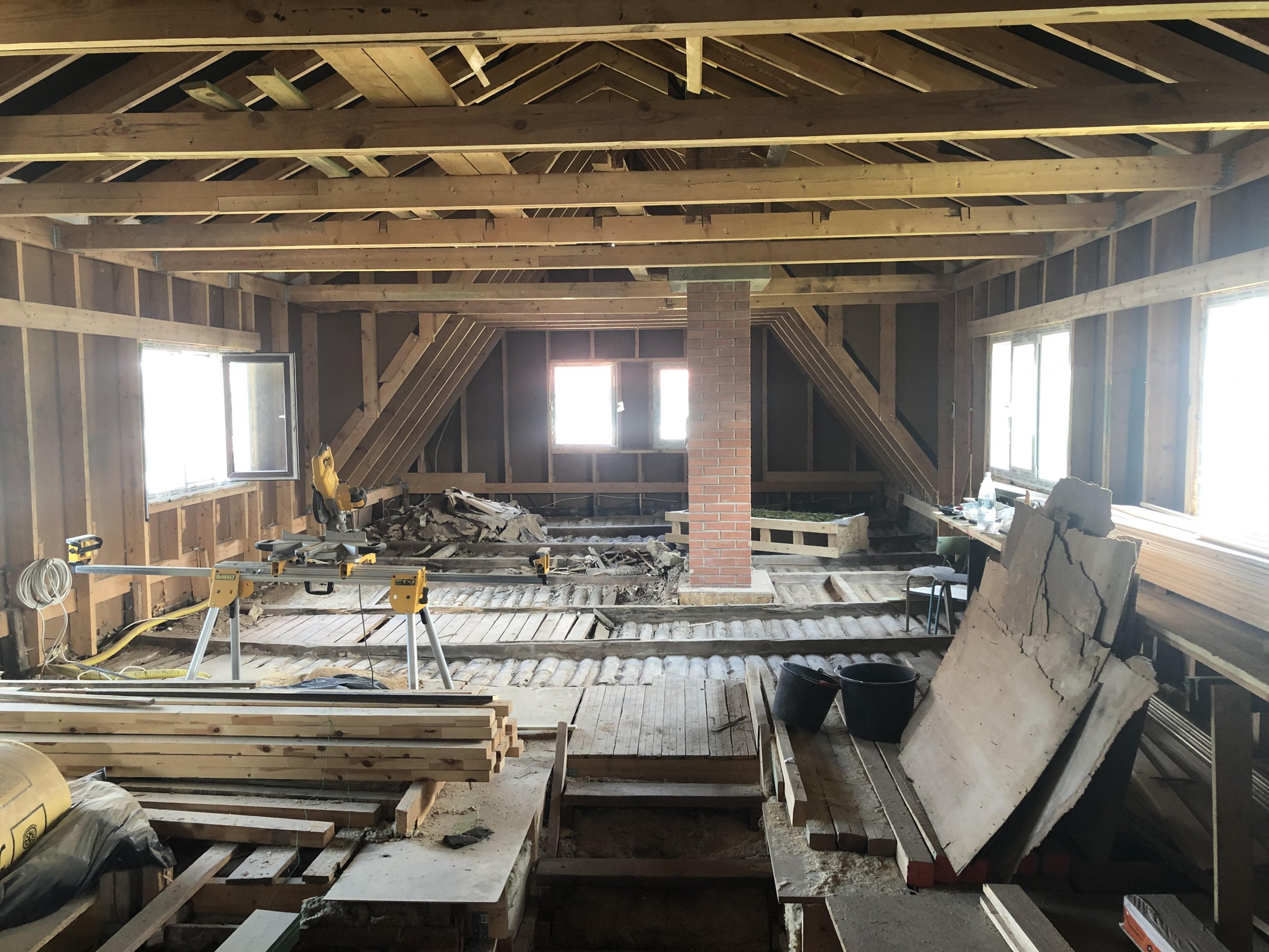 Vanade põrandatalade kõrvale, paigaldada uued põrandatalad, sirgeks rihtimine. Teostada: torutööd, vahelae soojustus, heliisolatsioon ja paigaldada OSB-plaat.