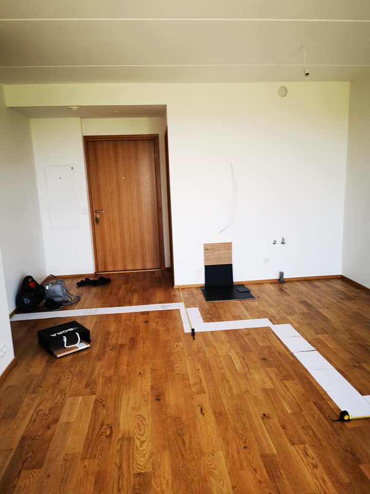 -esiku osas ja kööginurga all+ees tuleb üles võtta parkett (ca 11 ruutmeetrit)