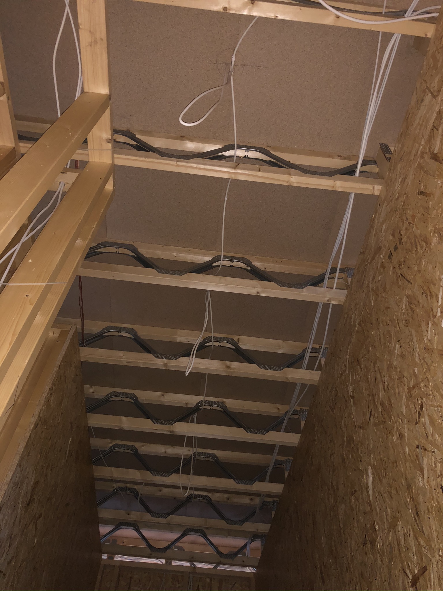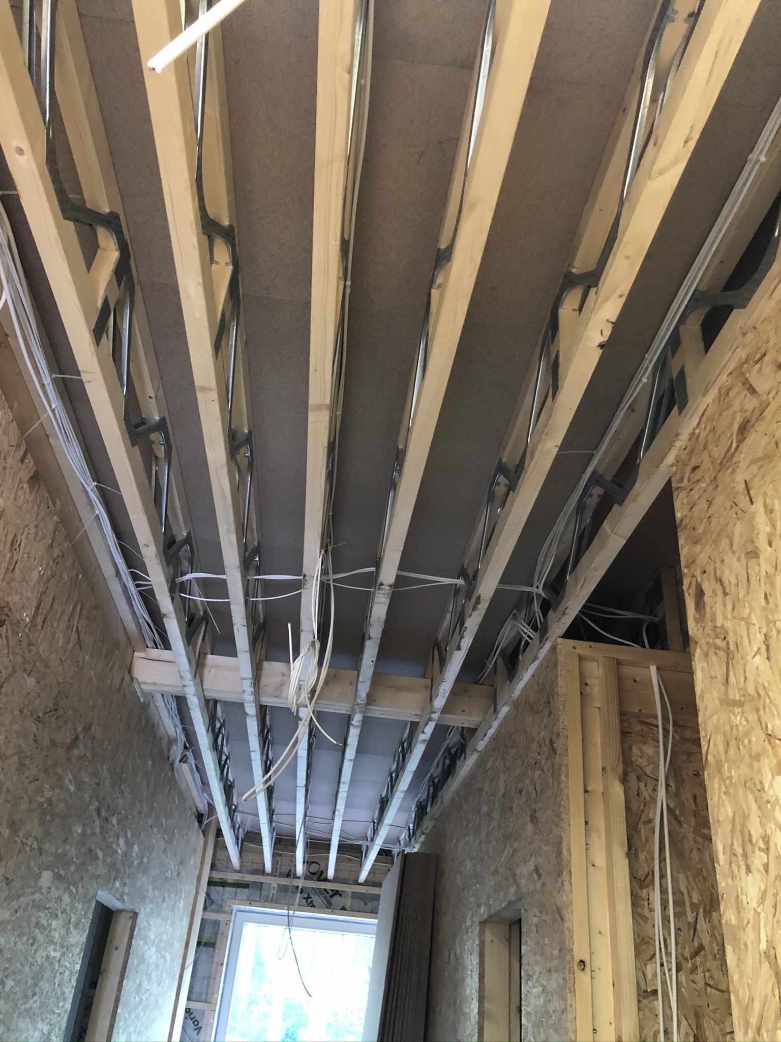 Paigaldada tuleb 105 m2 (300 mm paksuses kihis) puistevilla puit-metall-talade vahele. Lagi on alt poolt kiletatud. Villa tuleb paigaldada alt poolt, kile avades ja peale villatamist teipida. Vahelakke on paigaldatud elektrikaablid ja vetilatsioonikanalid. Vahelaetalade kaugused 600 mm ja 250 mm.