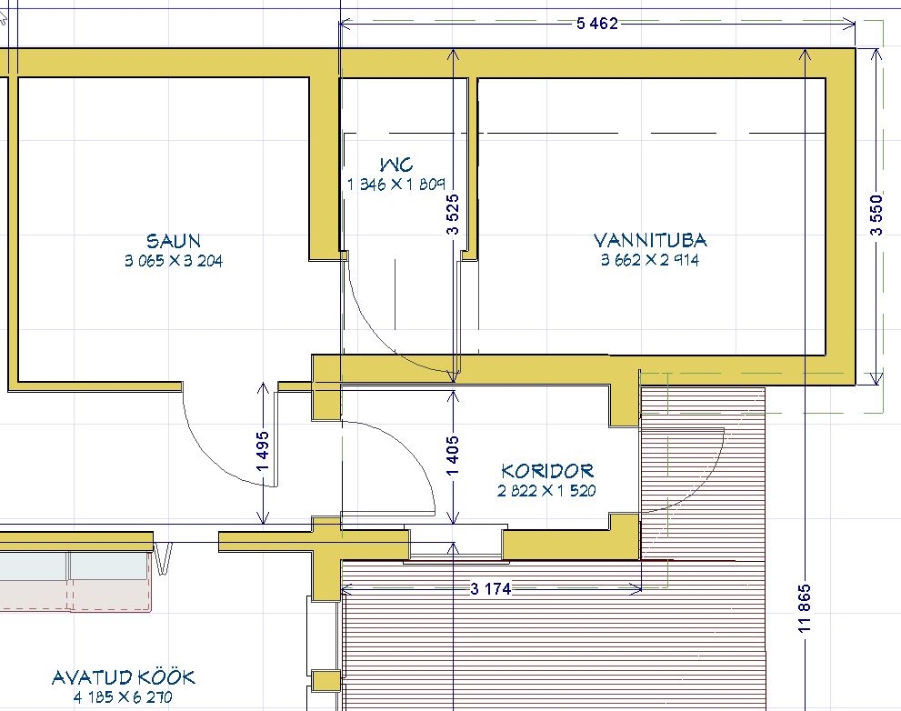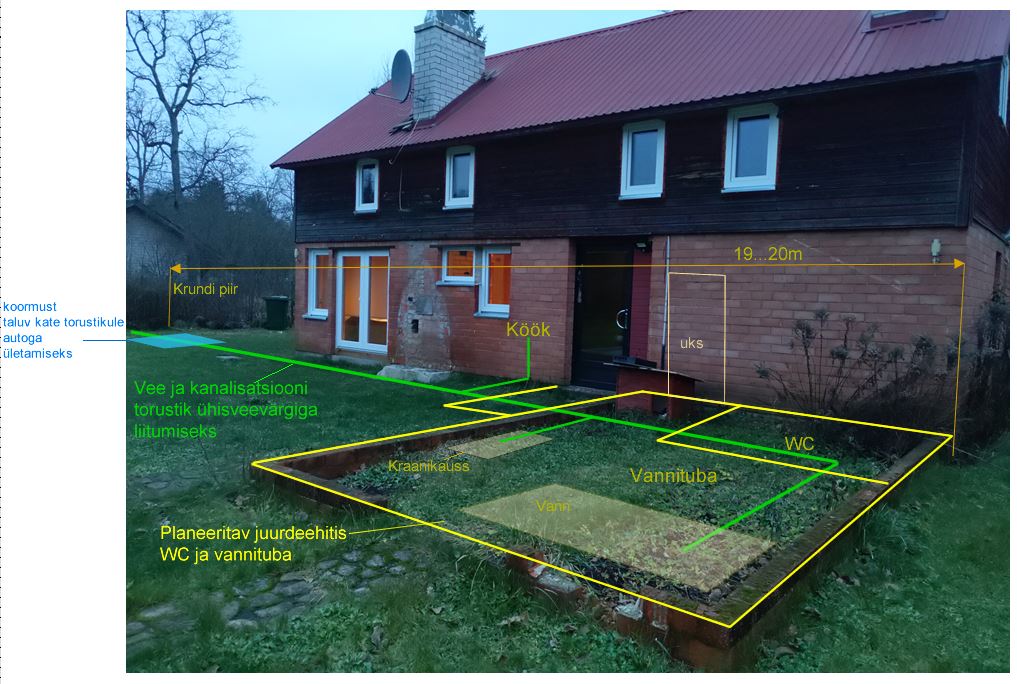 Planeeritav juurdeehitis on piltidel kollasega vana vundamendi peale.