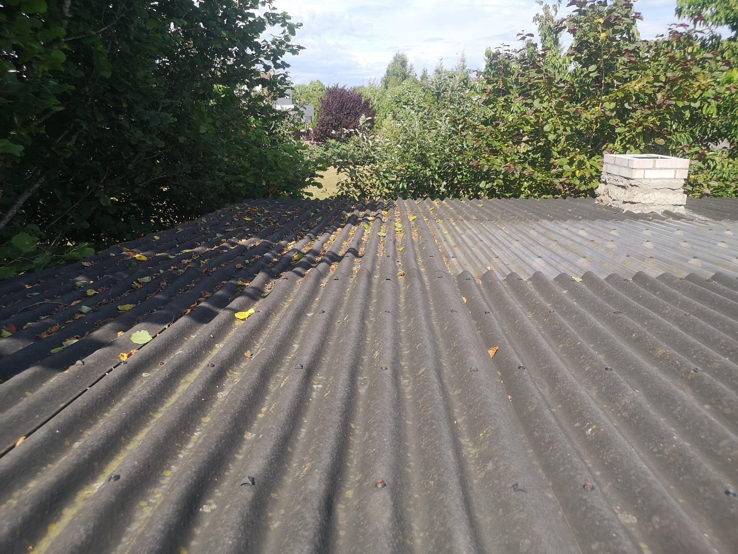 Väliköögil on praegu Onduline bituumenlaineplaatidest katus. See tuleb eemaldada ja asemele paigaldada Klassik profiiliga plekk-katuse kate. Praegu on osa katusekattest läbipaistvast plastikkattest, aga nüüd läheb kõik pleki alla, midagi läbi ei hakka paistma.