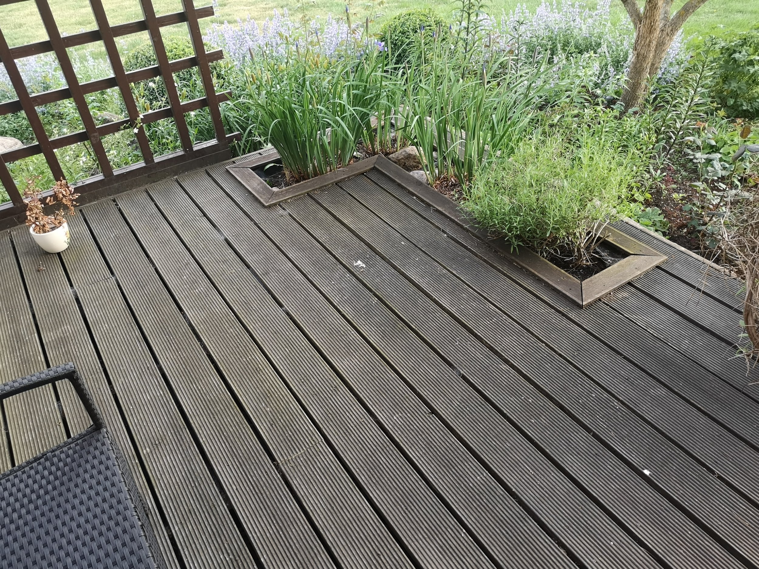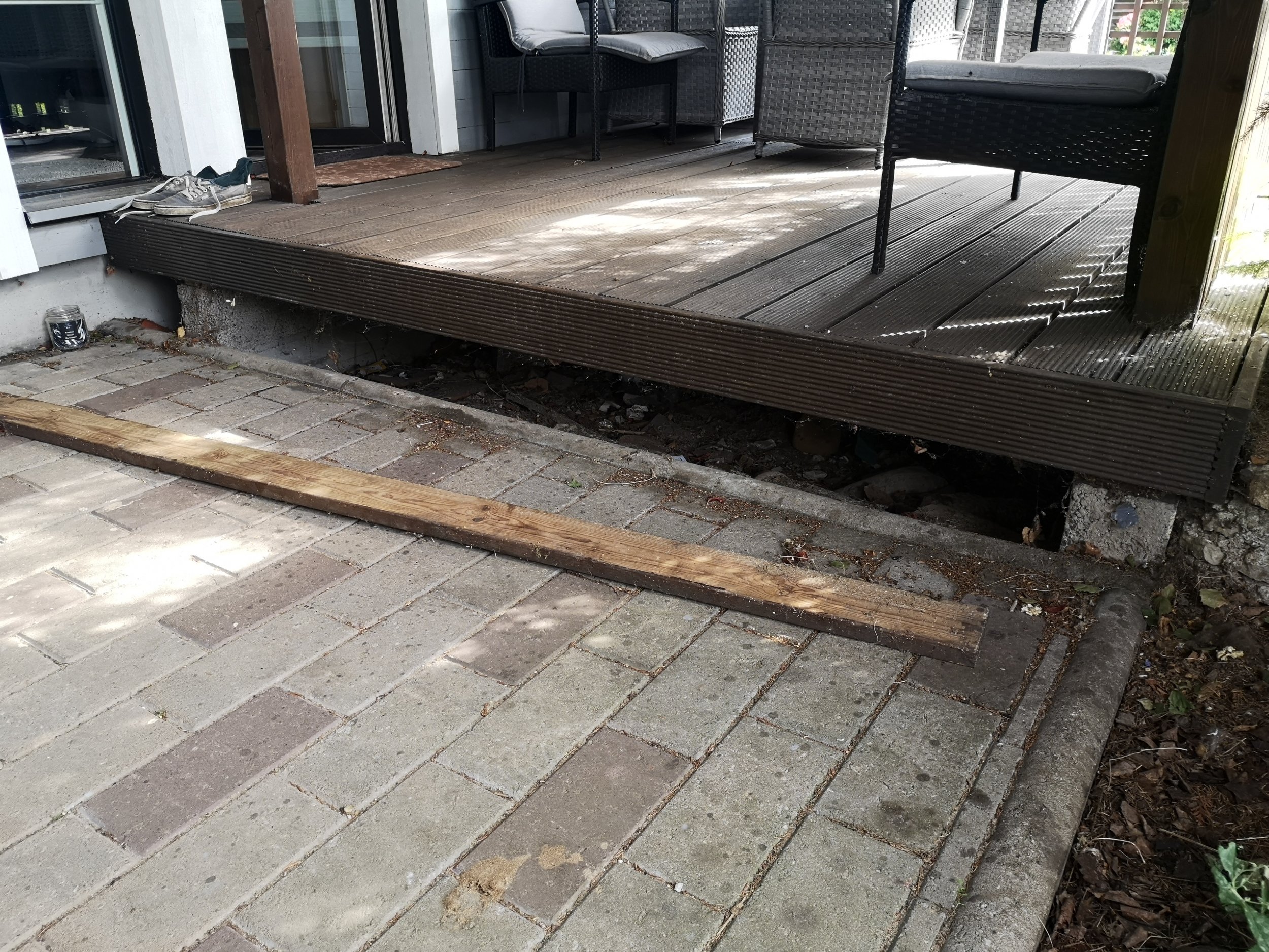 Olemasolev puidust terrassikate on vaja asendada komposiitmaterjalist (halli värvi) terrasikatte materjaliga.
