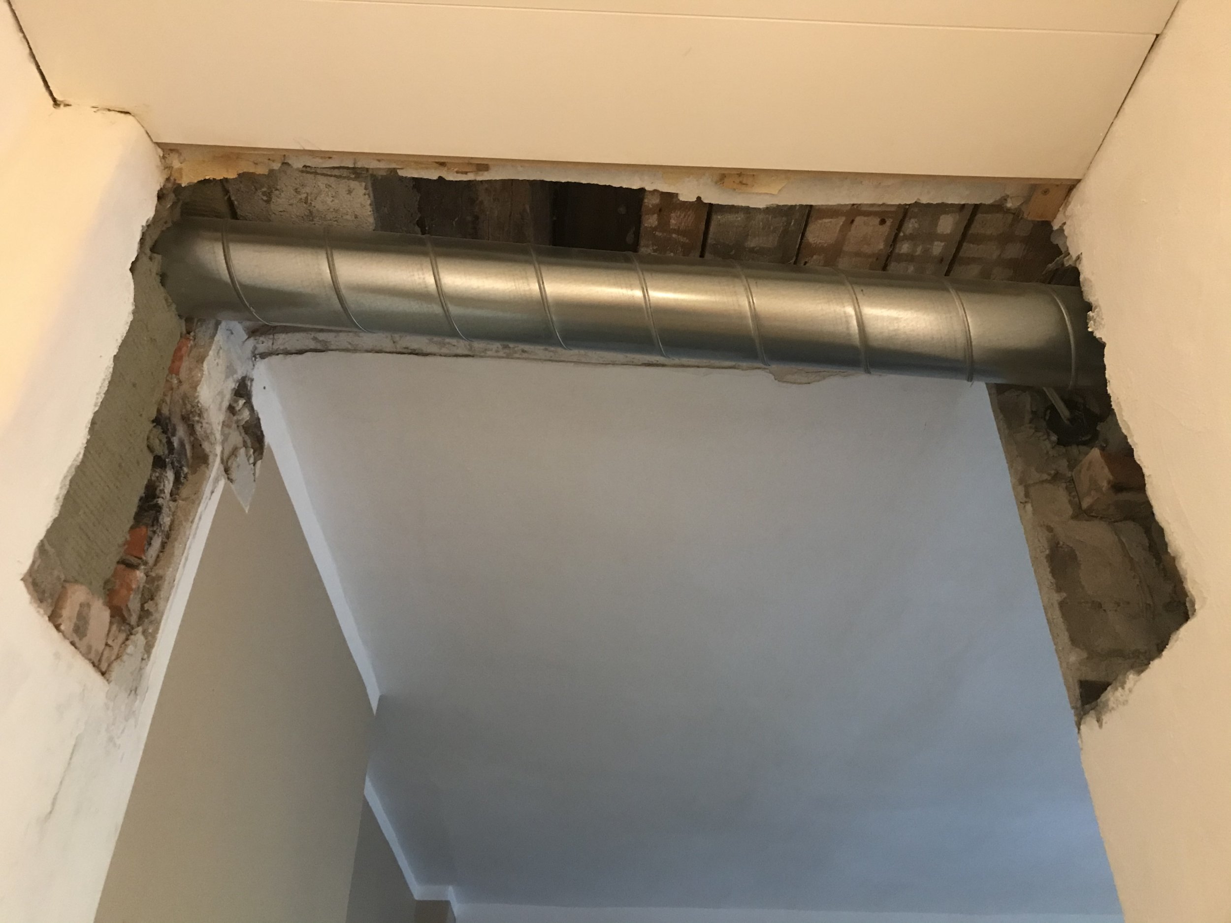 Vahetati gaasiboileri venti, sellega seoses on katki sein ja toru ümbert viimistlemata. Vaja oleks kõige lihtsamat moodi ehitada toru kinni, et oleks silmale ilus. Toru asub lae all.