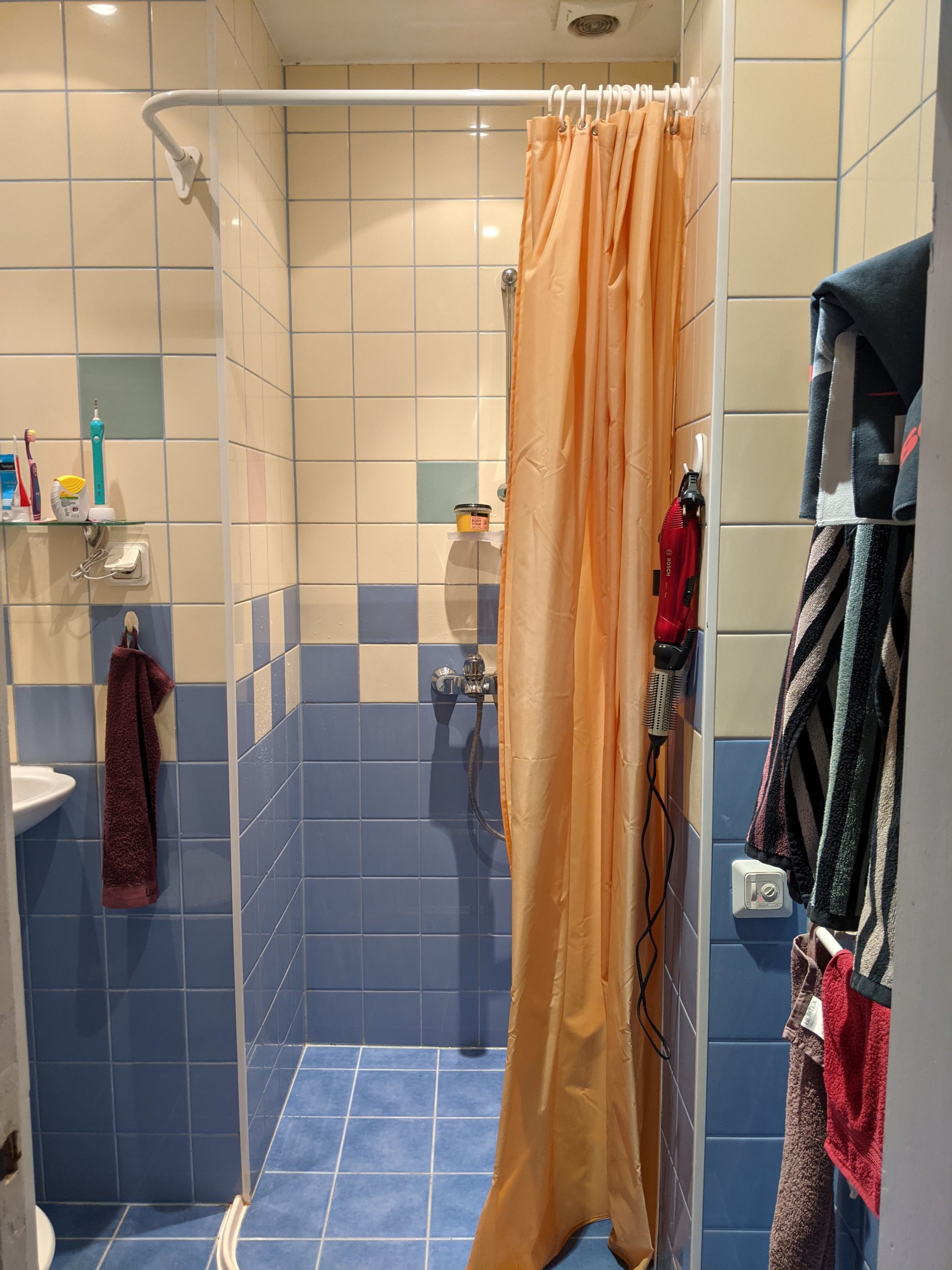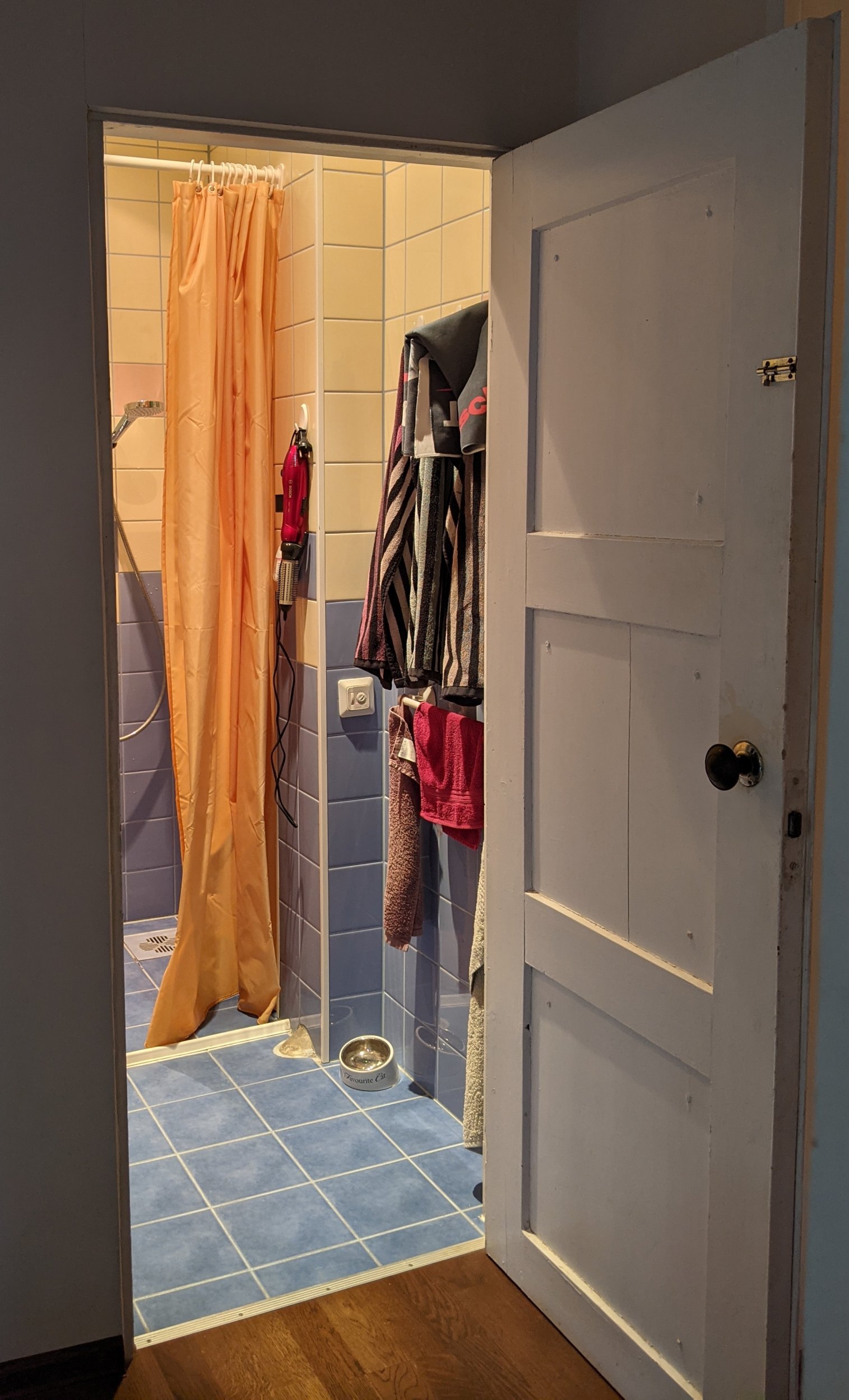 Umbes 15 aastat tagasi renoveeritud vannitoa remont. Põrandad ja seinad uuesti plaatida ning paigaldada uus, kõrgem uks.