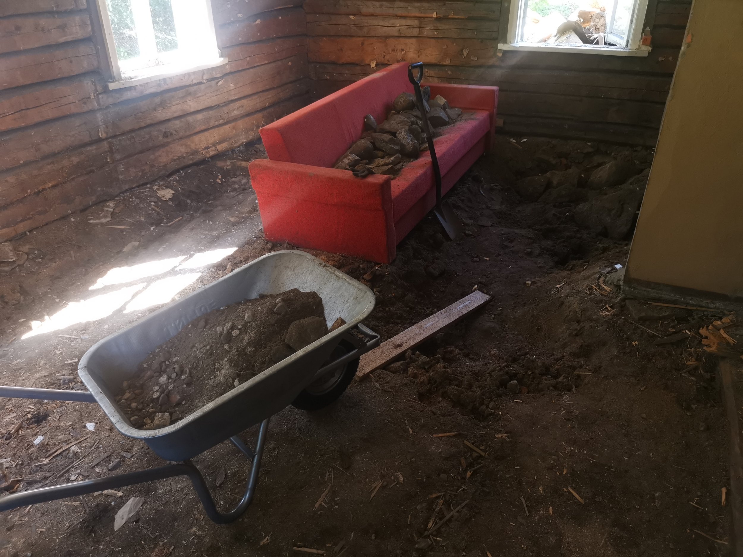 Muldpõranda ja kivide välja kaevamine, ca 66m2, 50-70cm sügavale. Kivide ja mulla välja viimine, teisaldamine ei ole vajalik.