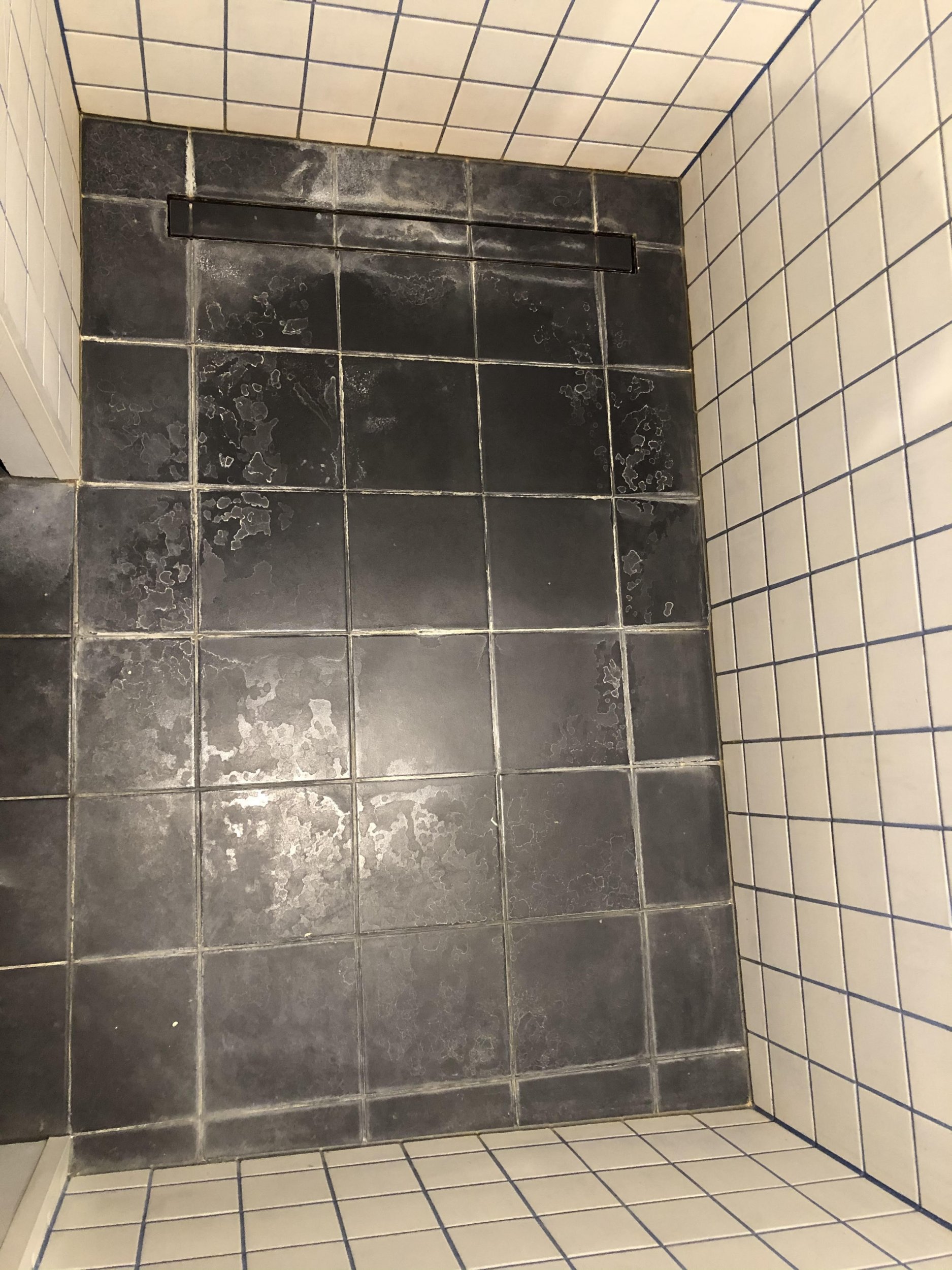 Duširuumi põranda keskmised plaadid on vajunud, mistõttu on vesi pääsenud pragunenud vuukide kaudu plaatide alla. Vaja oleks eemaldada plaadid ning paigaldada uuesti. Tegemist on valatud betoonpõrandaga (põrandasoojustusega), mille peal on kolmekordne hüdroisolatsioon.