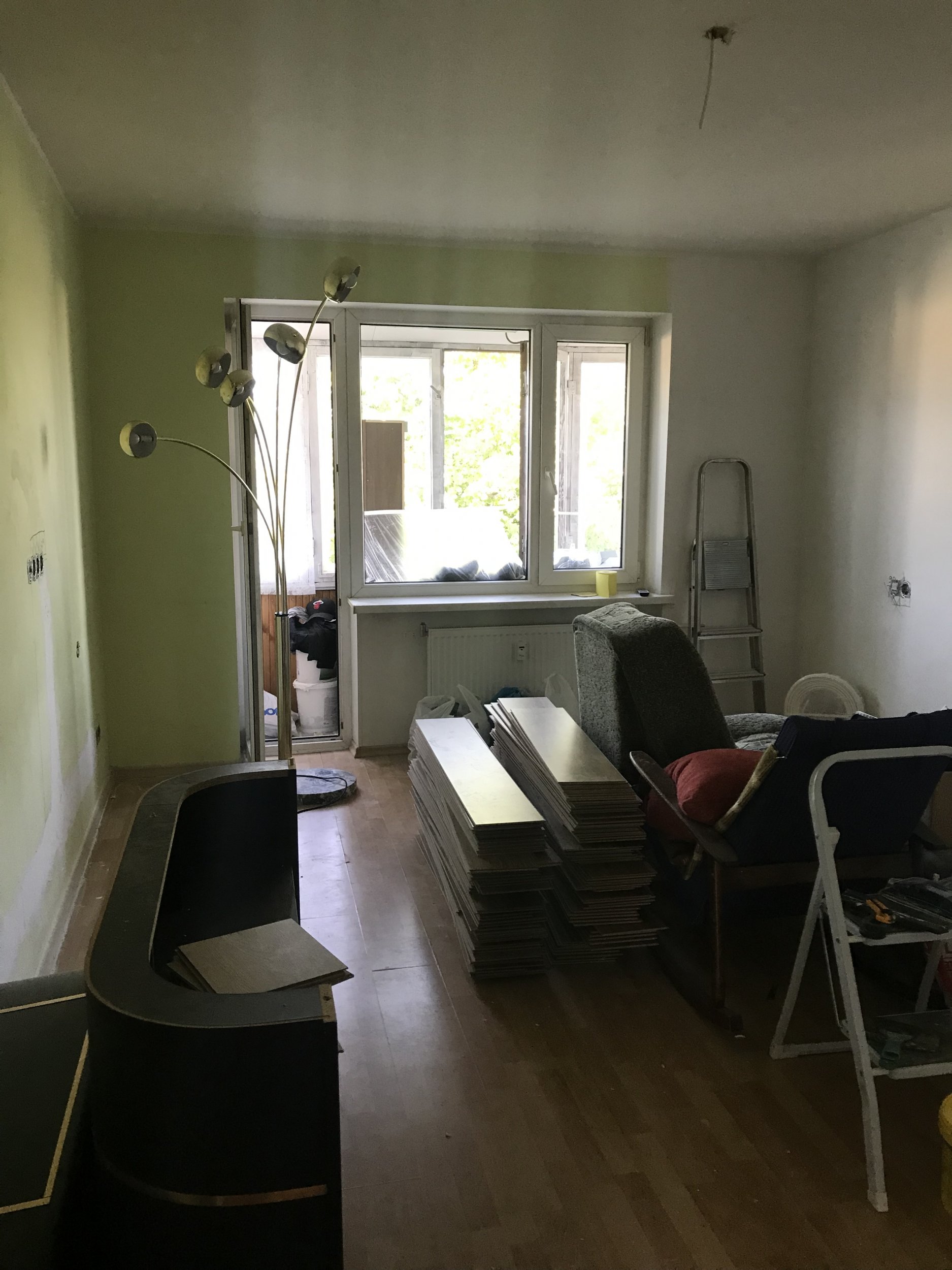 Tööde pindala umbes 52m2 (uks ja aken maha arvestatud, tuba tavaline ristkülikukujuline 5-korruselises majas).