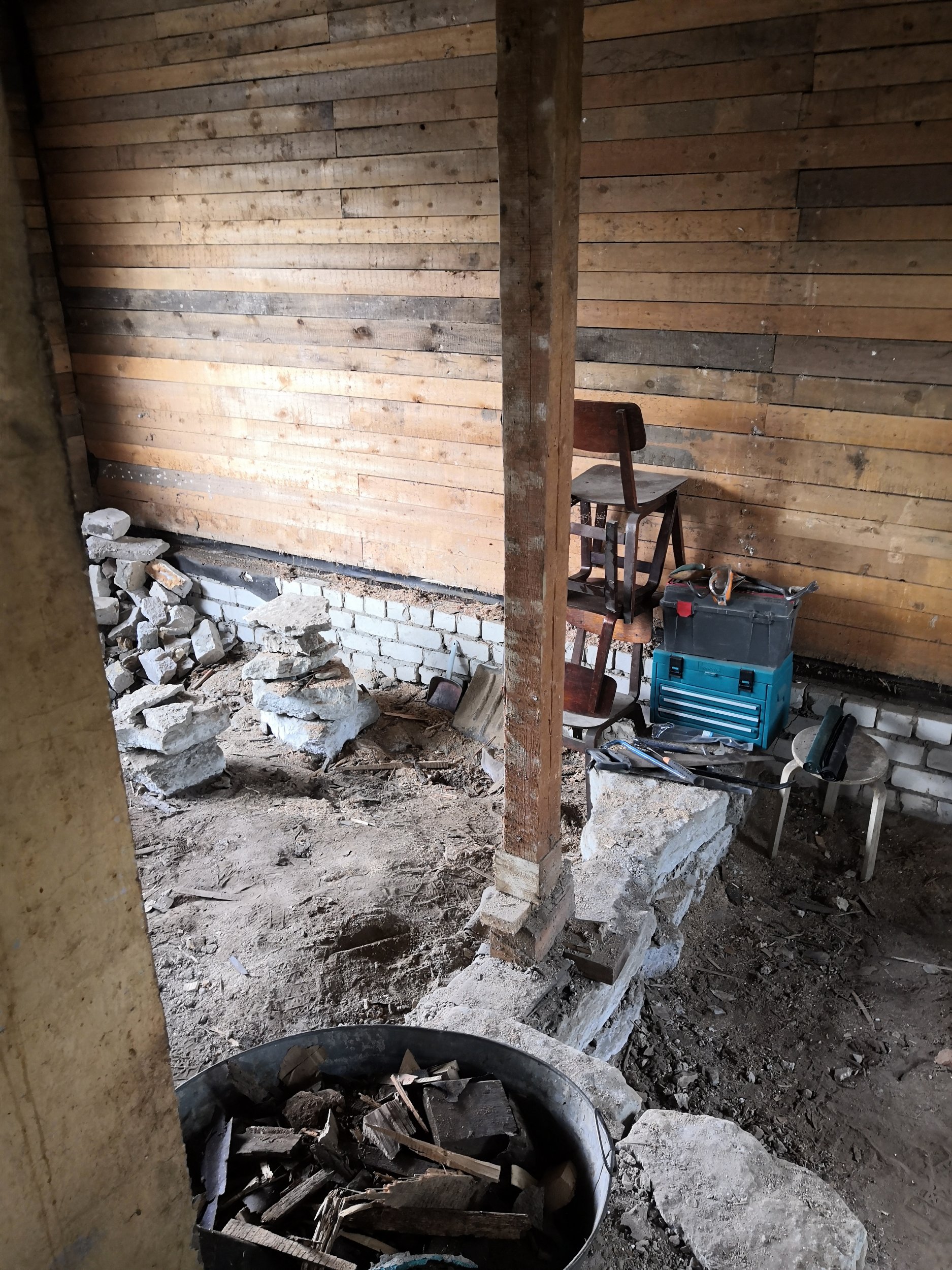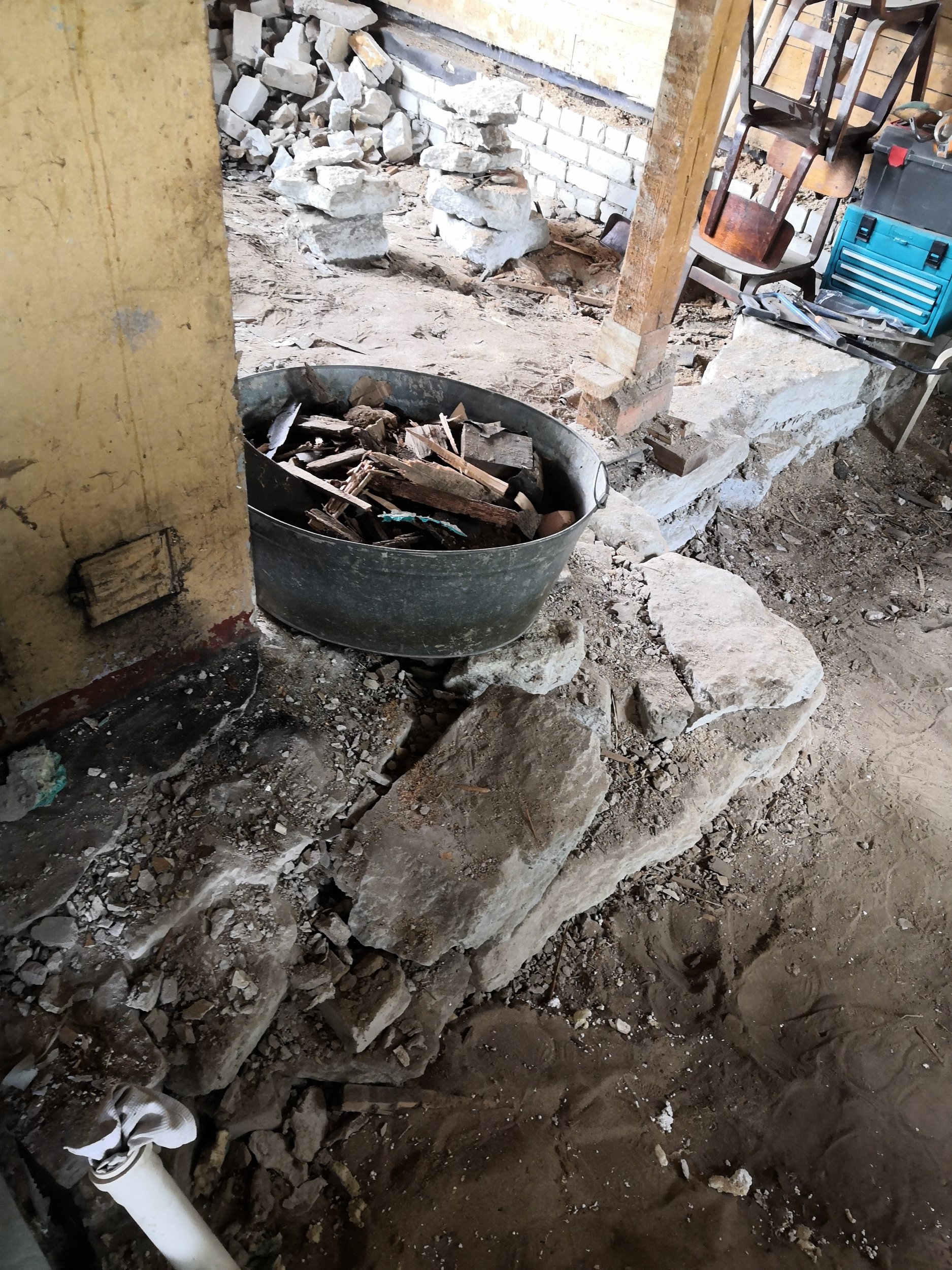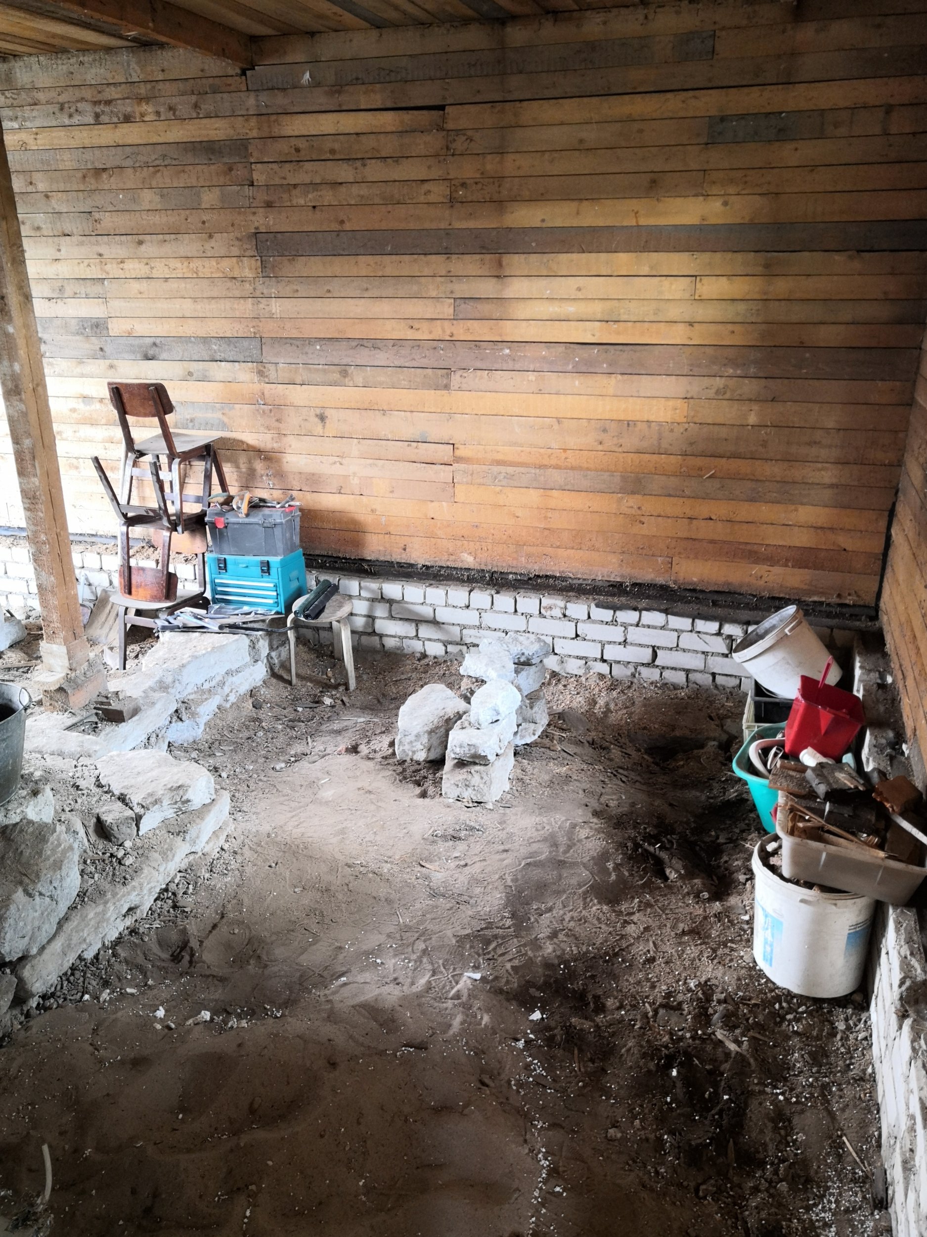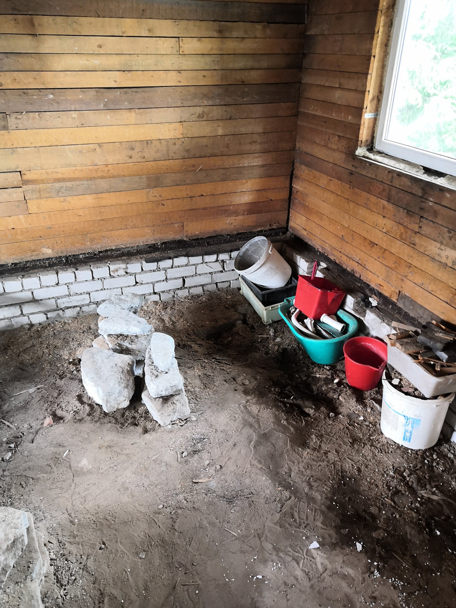 Keset ruumi on korstnajalg, telliskivi vundament ümberringi ja kivid mis on piltidel on kõik eemaldatud. Maapinna kõrges uue põranda kõrgusest umbed 40cm kuni 45cm.