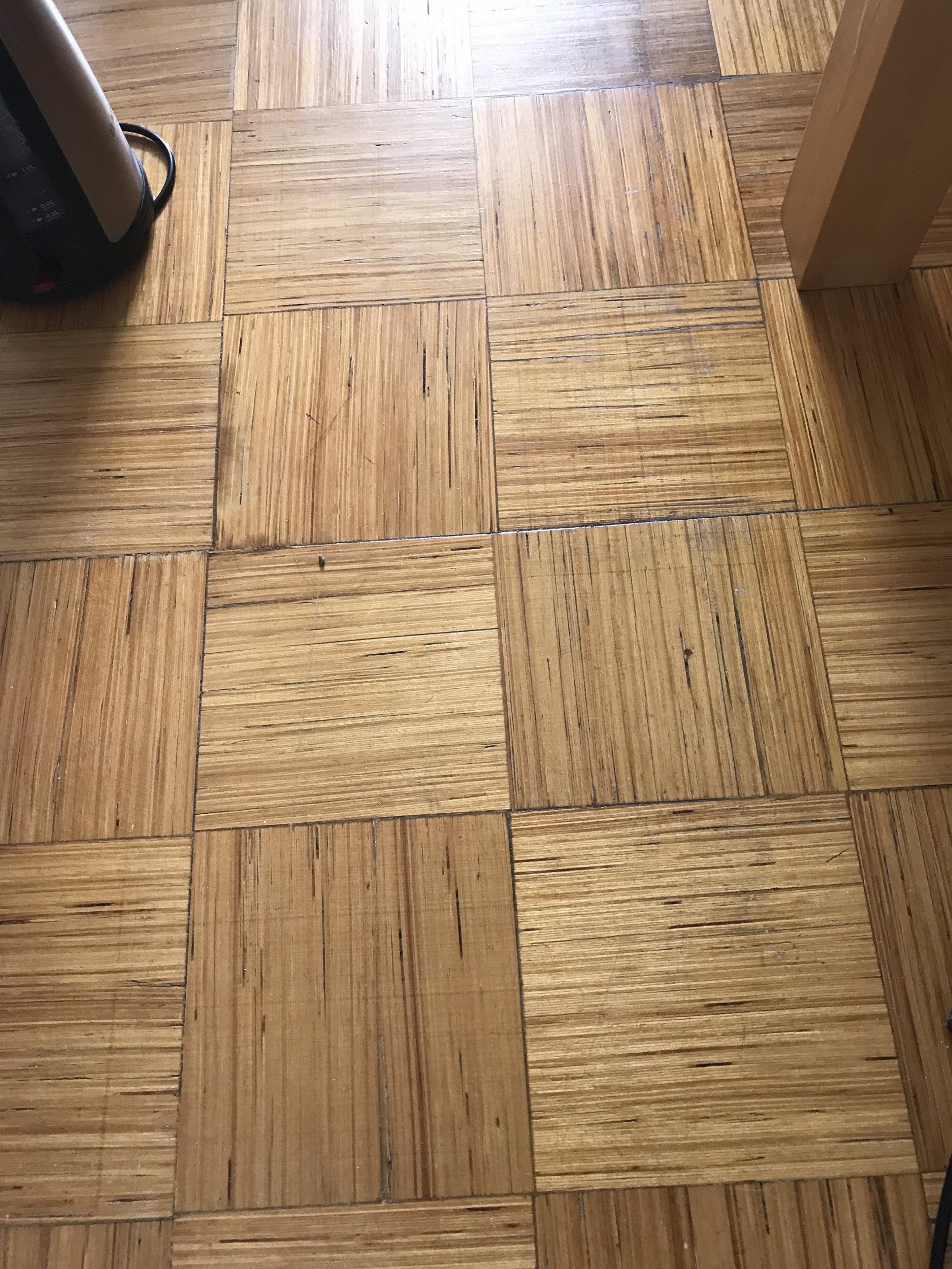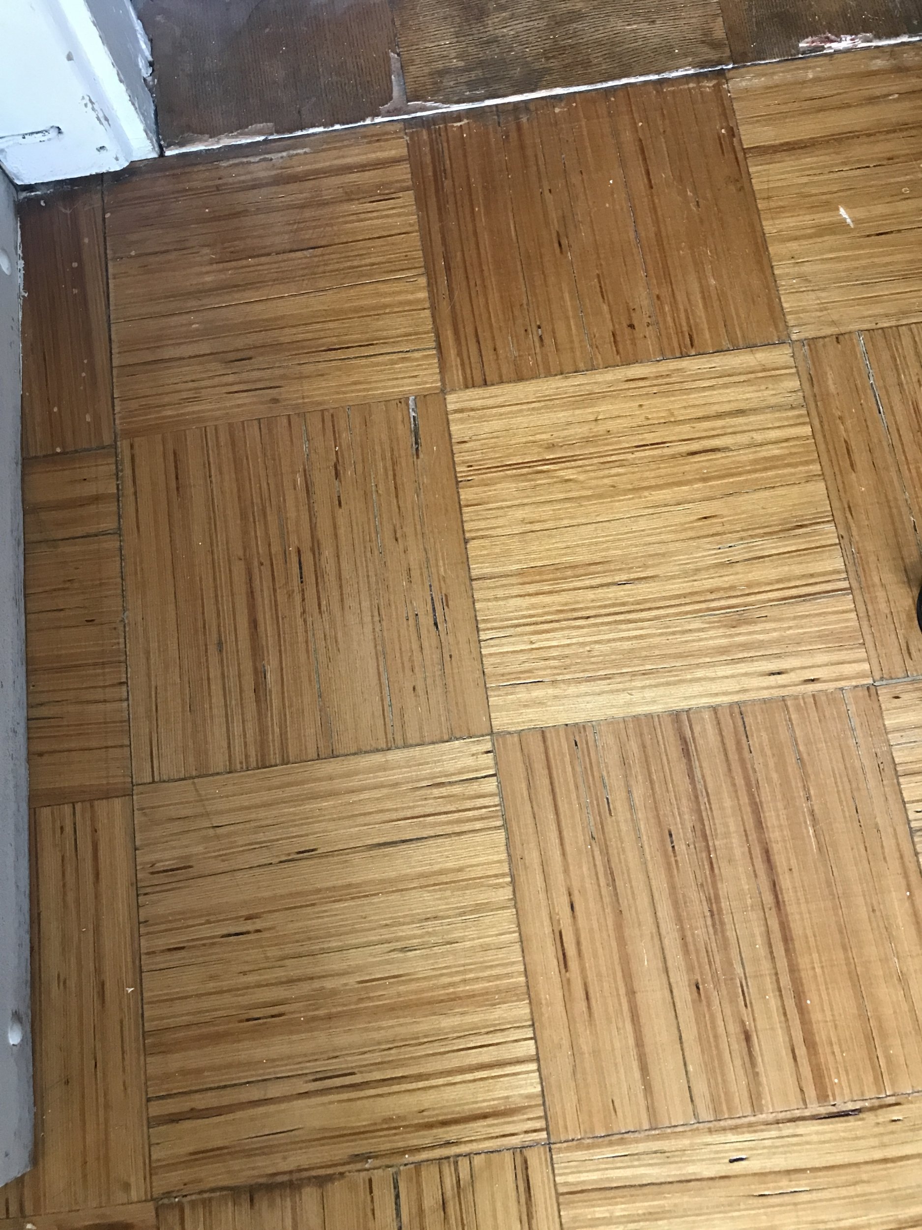 70-ndatel paigaldatud ja lakitud kilpparketi pinna töötlemine ja defektide parandamine, lakkimine.