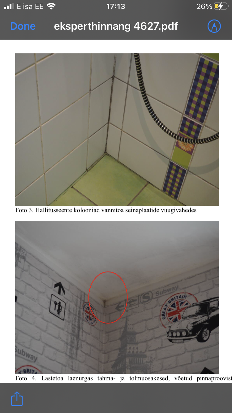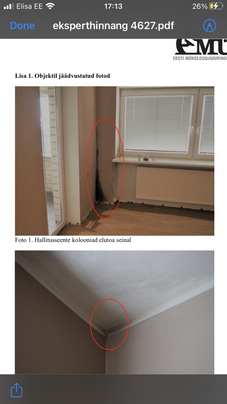 Korteris on hallitus, mis vajab tõrjet. Hallitus asub suuretoa nurgas, vannitoas ja lastetoas.