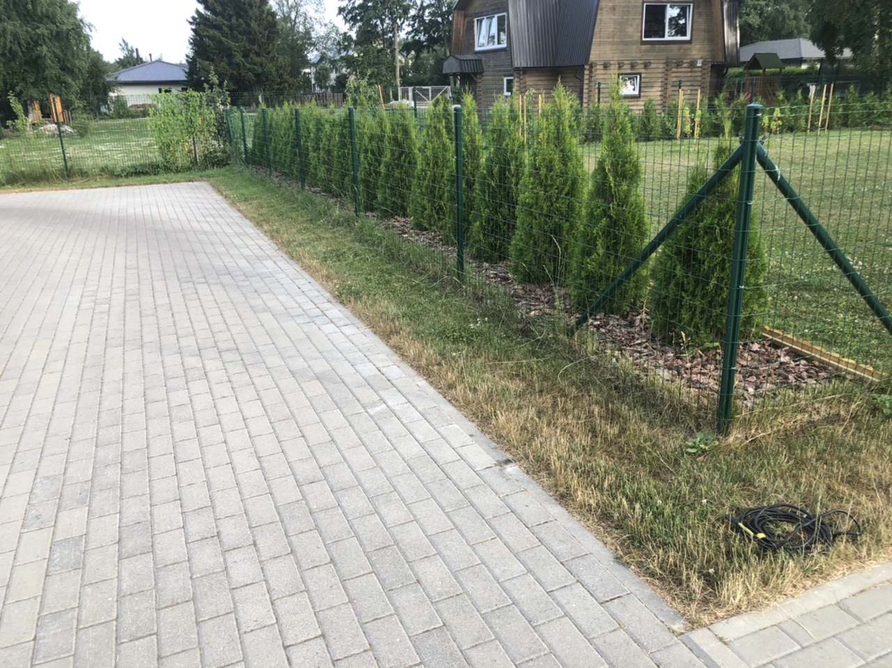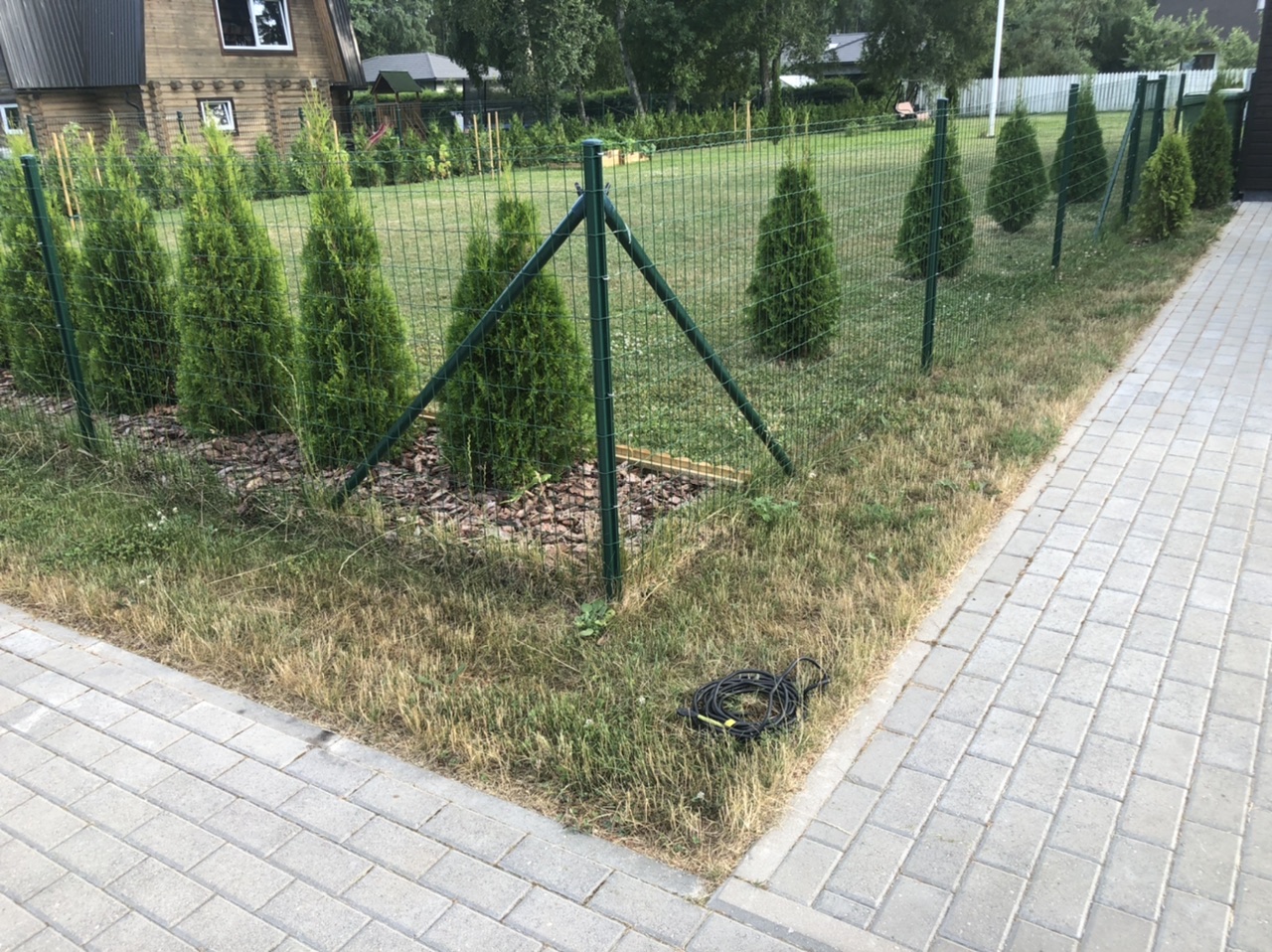 Toitejuhtme vedu vundamentideni. Toitekaabel võrkaia nurgas (vaata fotol).