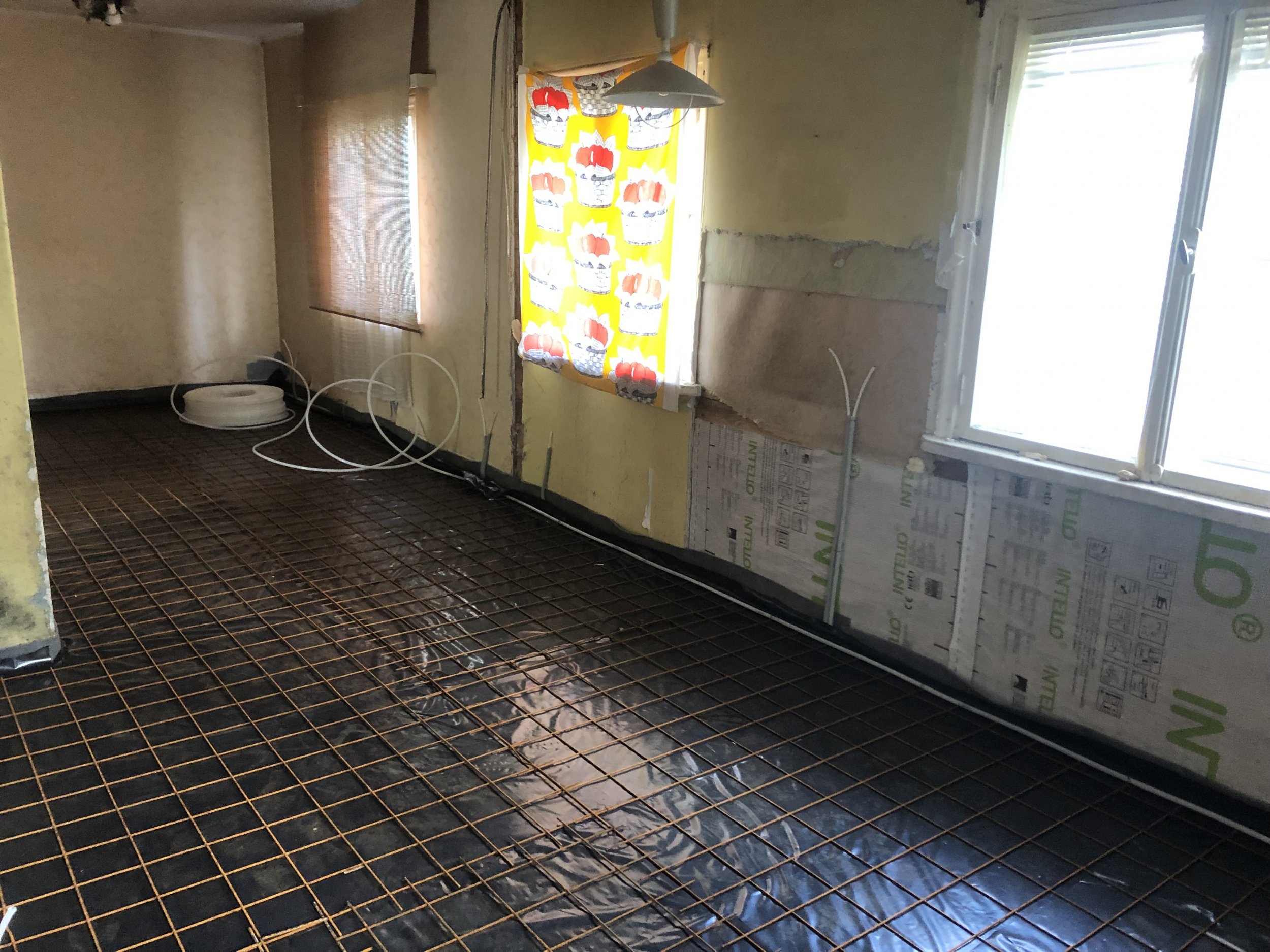 Paigaldatud on peno ja küttetoru, seina ääres lint.