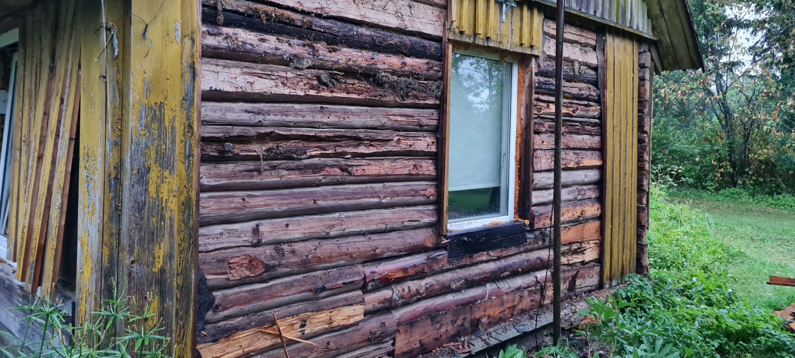 Palkide vahetus talu otsaseinale, sisuliselt kõik palgid mädanenud ning vajavad vahetamist. 3x6 m seina suurus.