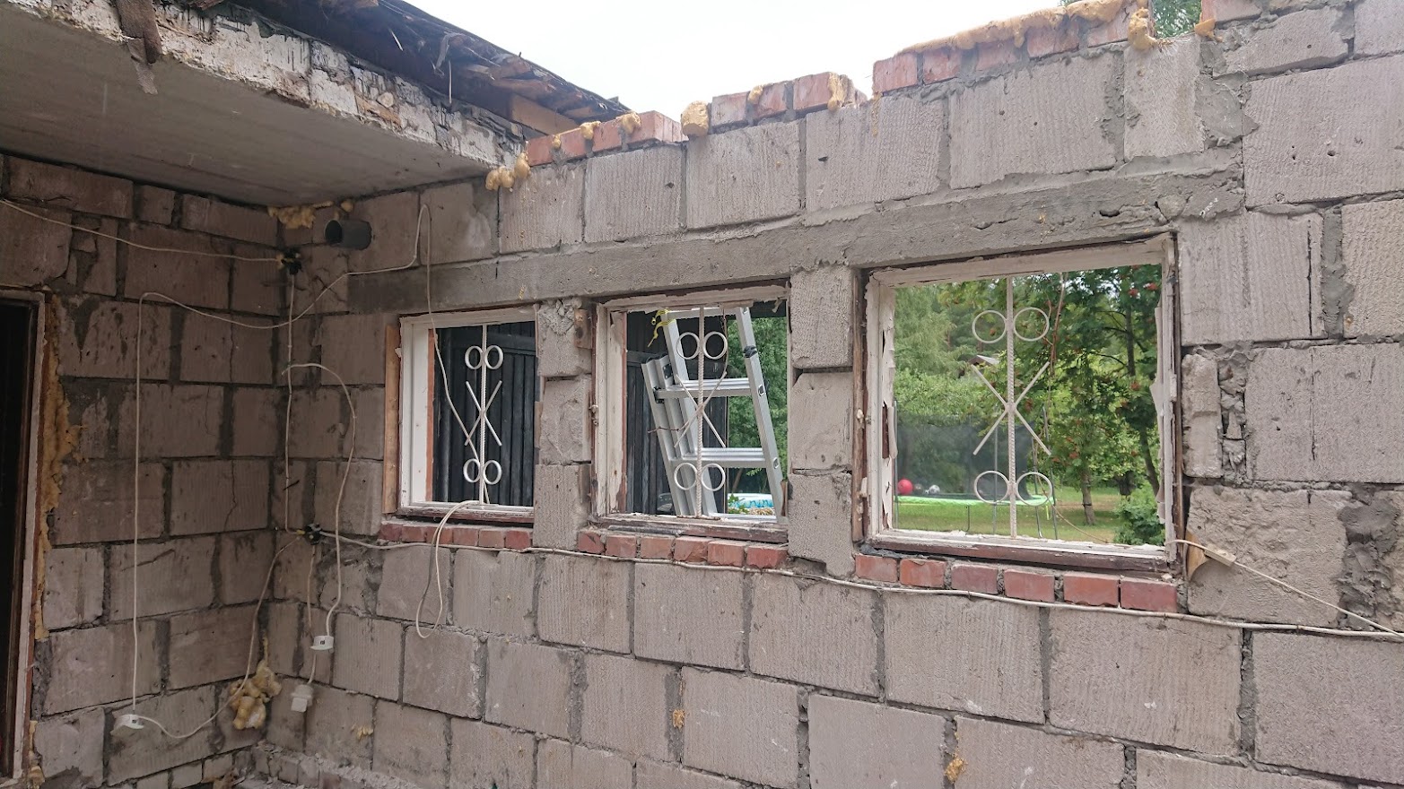 Olemasolevasse seina teha kaks uut ukseava ja laduda kinni kolm olemasolevat aknaava ... osaliselt need kattuvad. Lisaks valada uus sillus, mis toetab osaliselt olemasolevat õõnespaneeli. Õõnespaneelile on vaja teha ajutine toetus. Paneel ise ei kanna hetkel midagi.