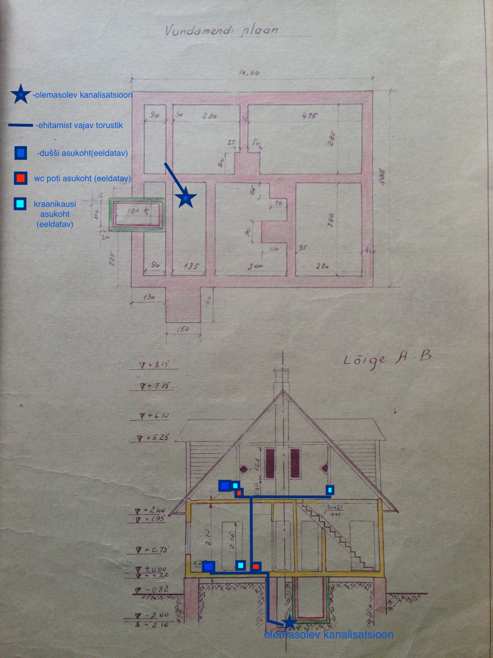 Vee- ja kanalisatsioonitorustiku ehitamine eramajja. Maja ehitatud 1965, hetkel renoveerimisel. Valla veevärk majas sees olemas aga sooviks sisse ehitada veega wc.